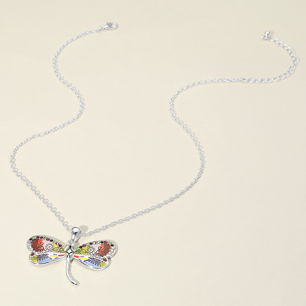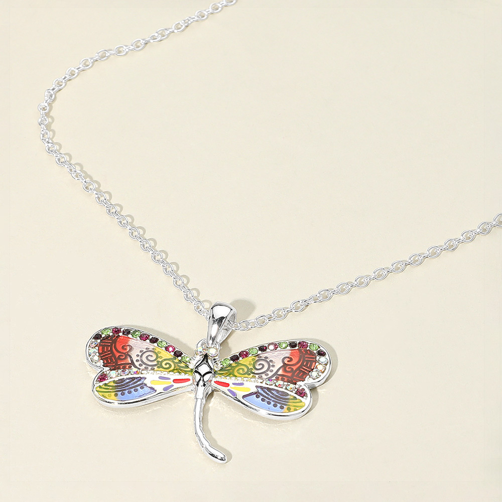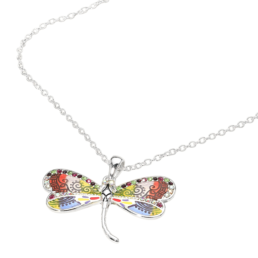Antique Metal Enamel Dragonfly Pendant Necklace