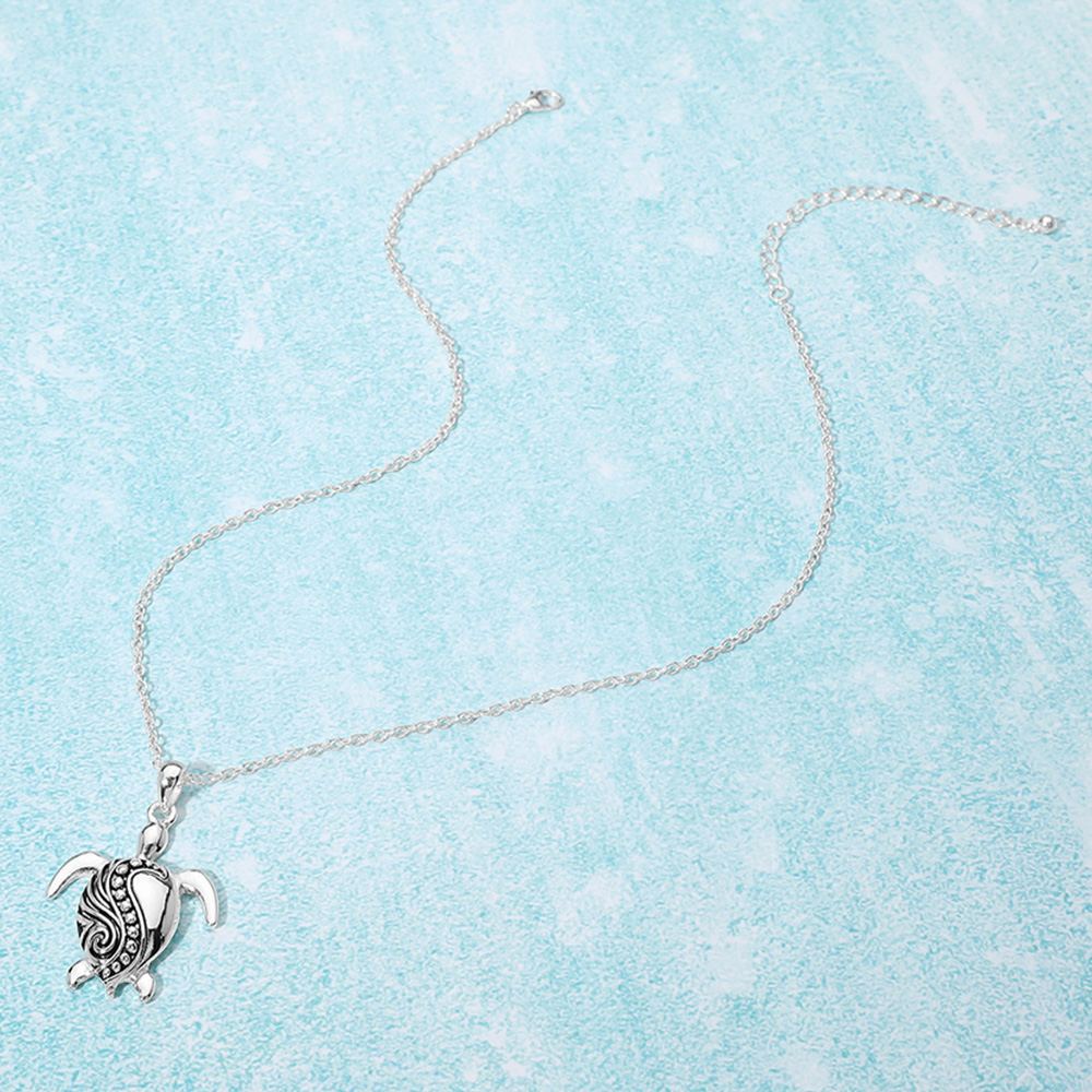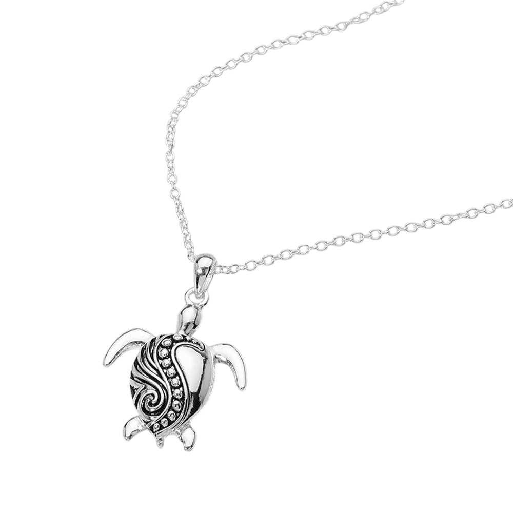 Stainless Steel Stone Paved Mother of Pearl Turtle Pendant Necklace