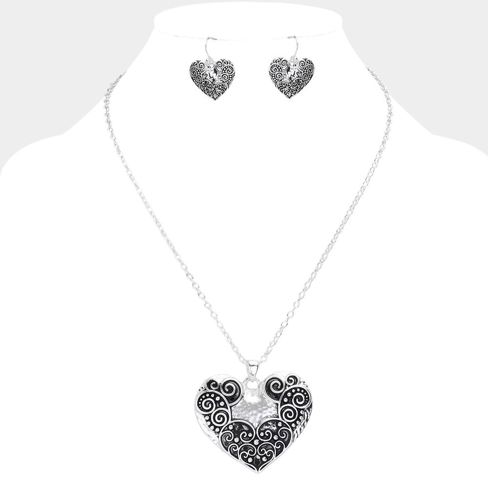 Antique Metal Angel Wing Heart Charm Staton Toggle Bracelet