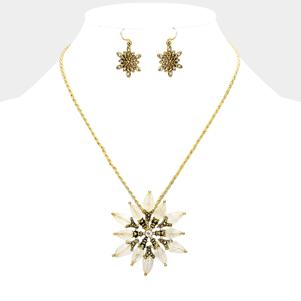 Bold Faux Leather Floral Embellished Pearl Strand Statement Necklace