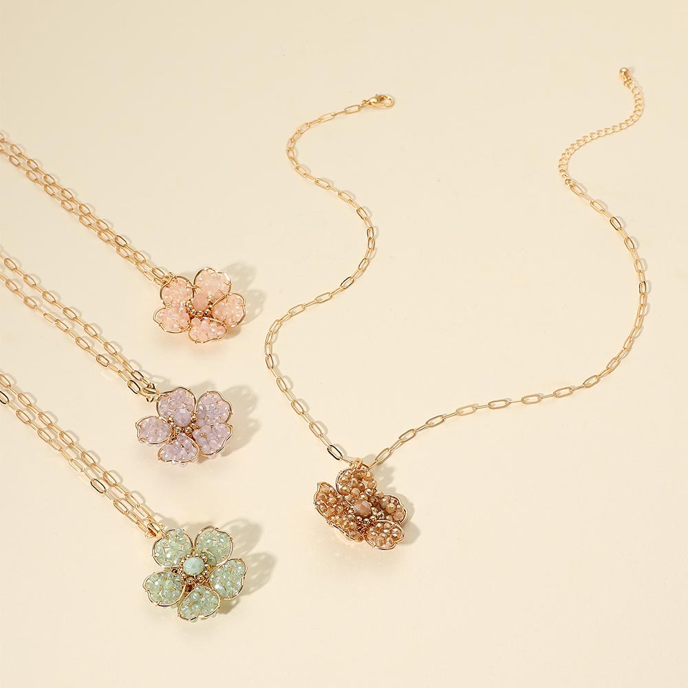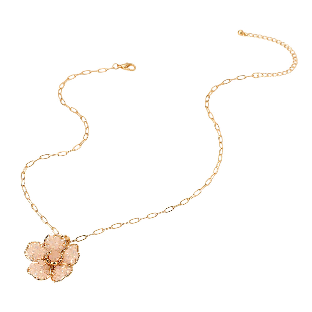 Details • Necklace Size : 16.75" + 3" L • Pendant Size : 1.2" X 1.6" • Charming necklace featuring a floral pendant with faceted accents on a dainty chain. A sweet and elegant accessory ideal for everyday wear or adding a feminine touch to special outfits. • Lead and Nickel Compliant