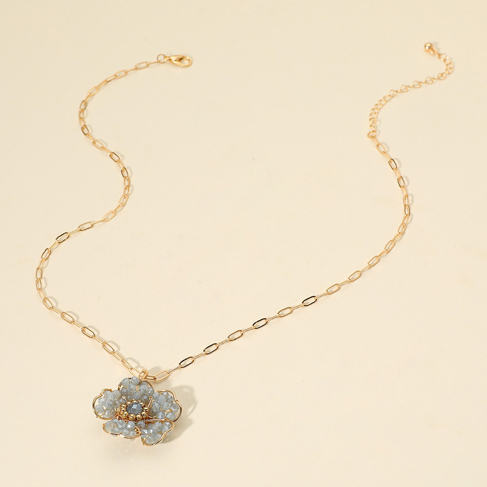Beaded Flower Pendant Paperclip Chain Necklace