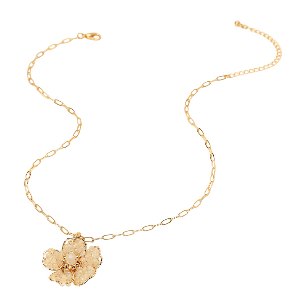 Details • Necklace Size : 16.75" + 3" L • Pendant Size : 1.2" X 1.6" • Charming necklace featuring a floral pendant with faceted accents on a dainty chain. A sweet and elegant accessory ideal for everyday wear or adding a feminine touch to special outfits. • Lead and Nickel Compliant