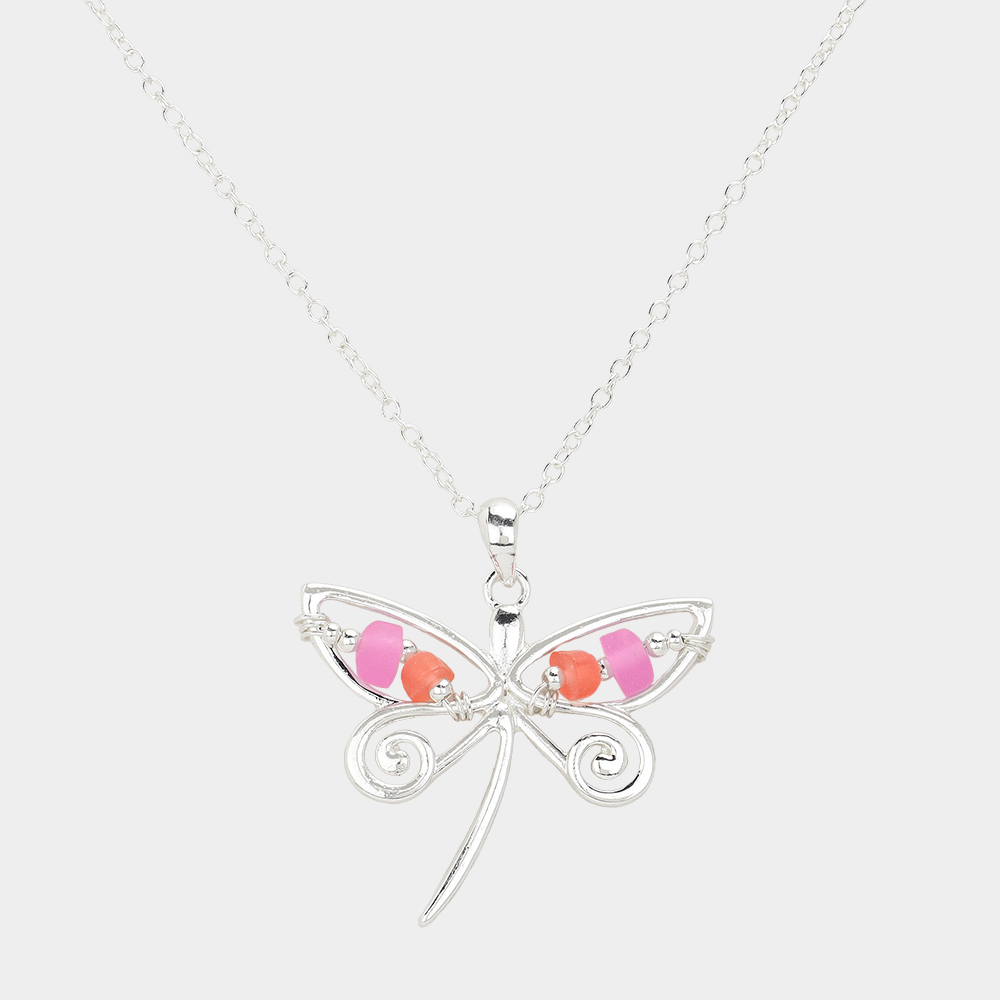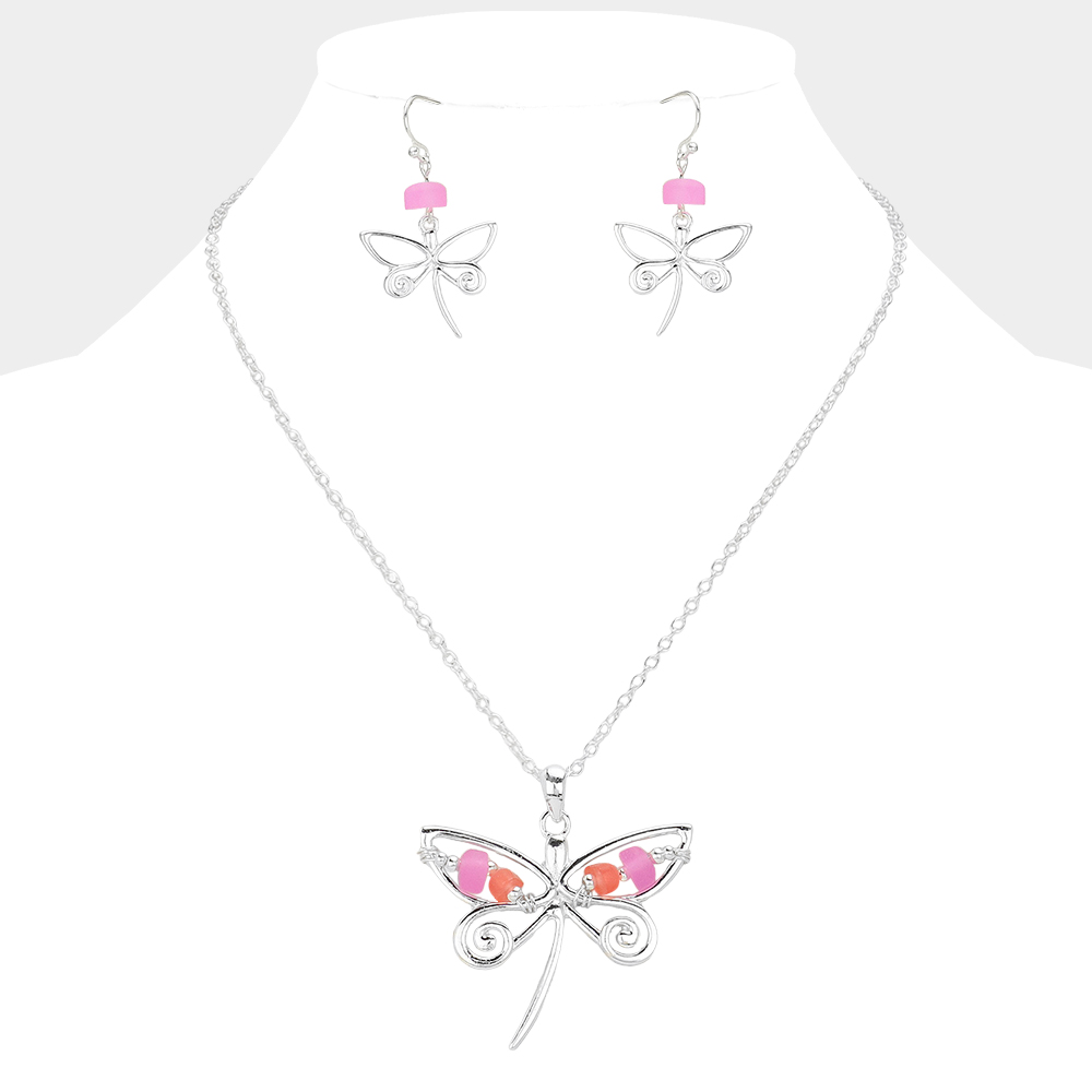 Bean Beads Accented Metal Wire Dragonfly Turtle Pendant Necklace