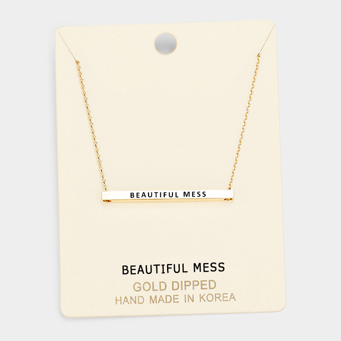 'Beautiful Mess' Horizontal Metal Bar Pendant Necklace