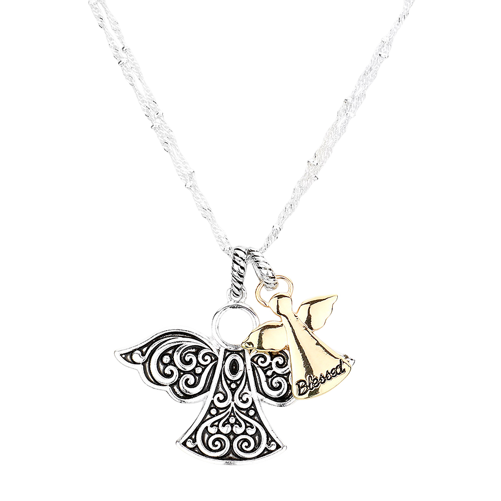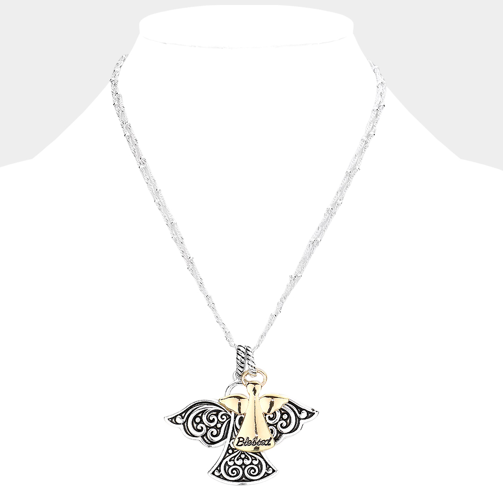 Cross Blessed Message Heart Wing Charm Multi Bead Bracelet