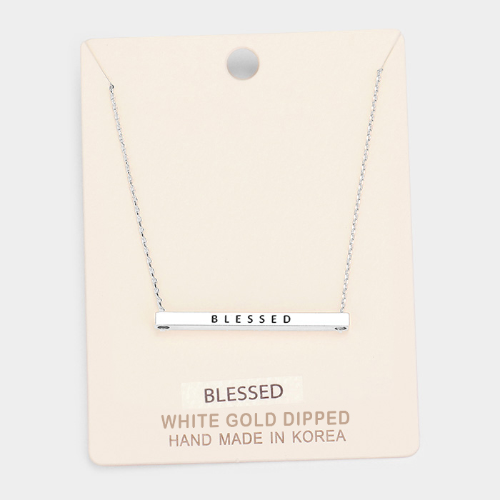 'Blessed' Horizontal Metal Bar Pendant Necklace