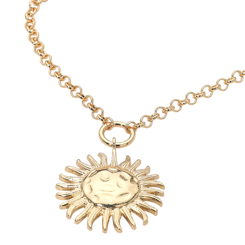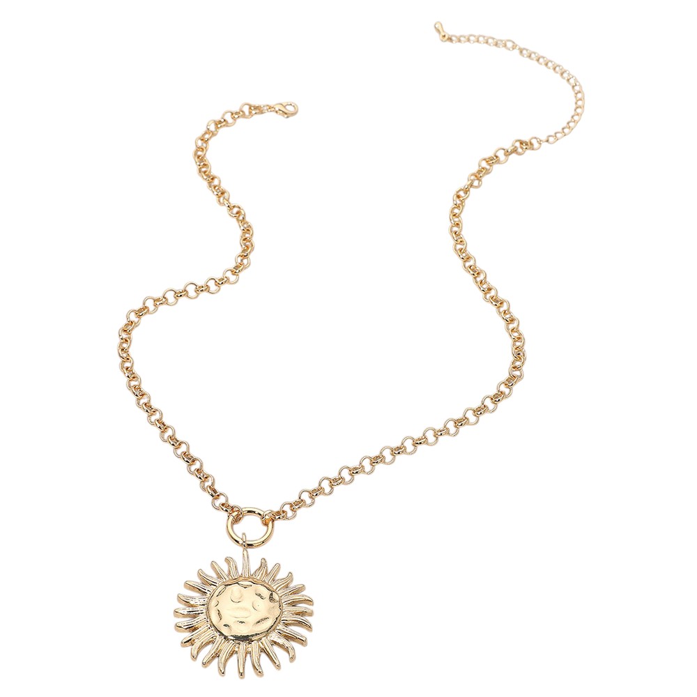 • Illuminate your look with this radiant sunburst pendant necklace featuring a striking circular charm and artistic detailing. Designed to capture light and attention, it’s the perfect statement piece for adding a touch of confidence, warmth, and creativity to any outfit.