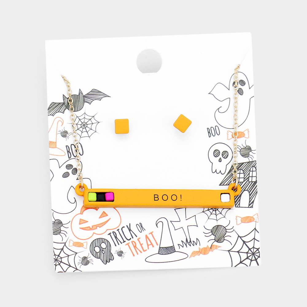 Rhinestone Pave Trick Treat Halloween Message Drop Earrings