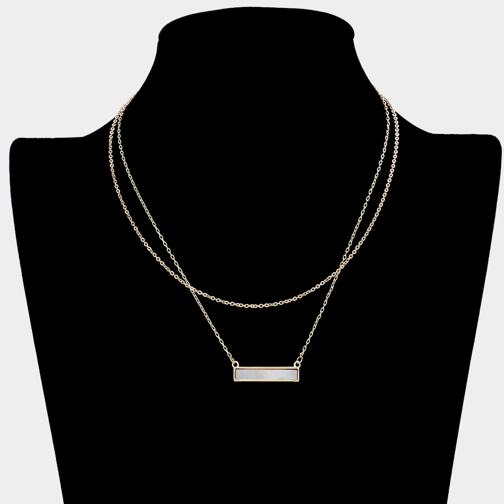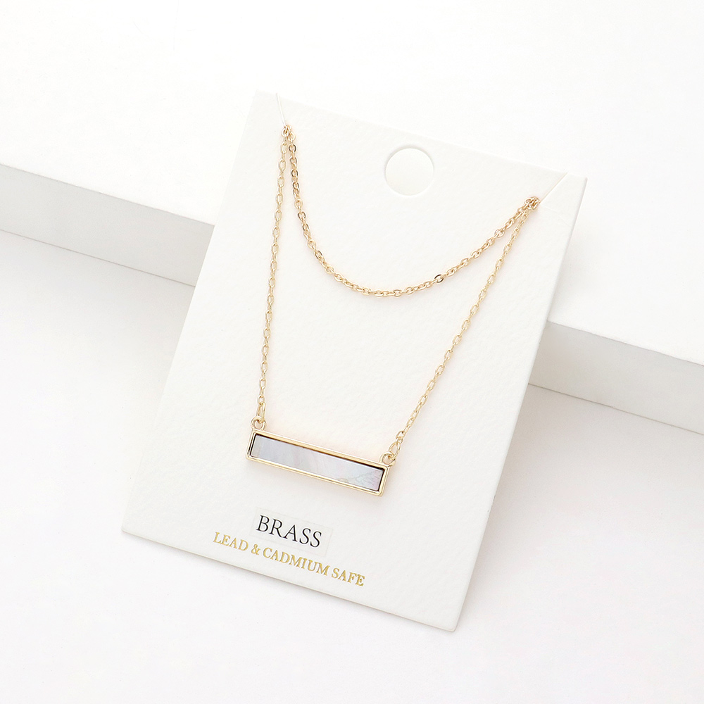 Brass Metal Mother of Pearl Rectangle Pendant Double Layered Necklace