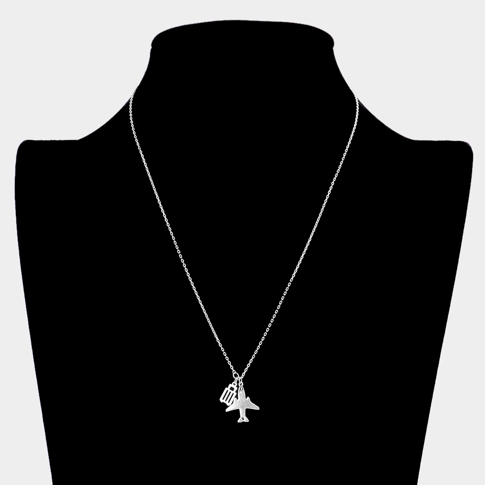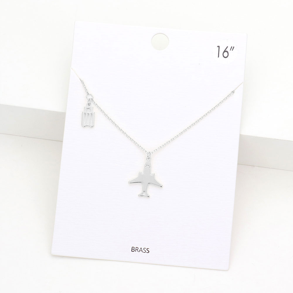 White Gold Dipped Brass Metal Round CZ Station Necklace