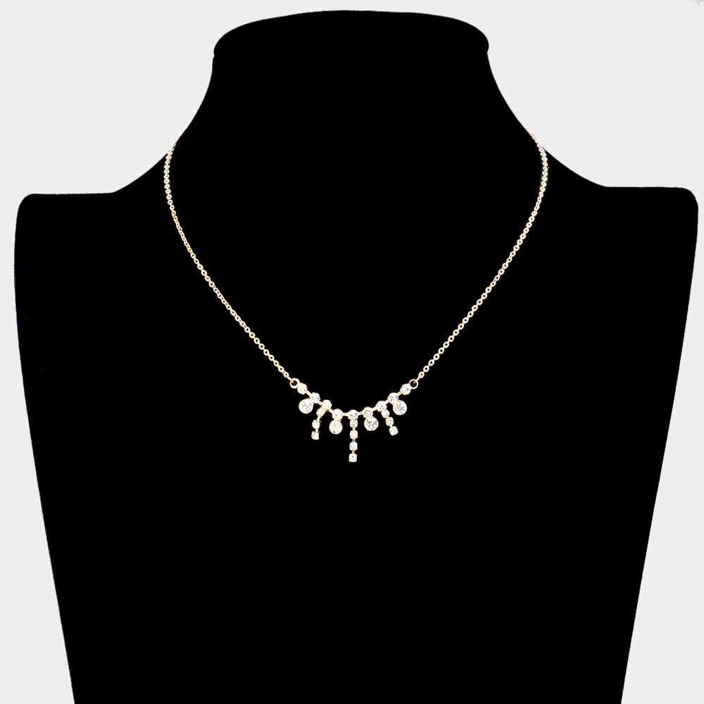 Marquise Stone Fringe Rhinestone Paved Necklace