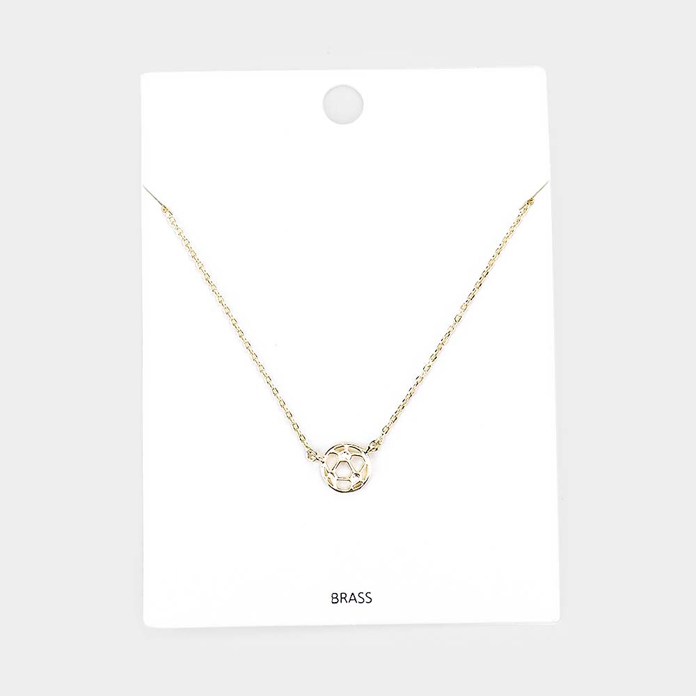 Brass Metal Cutout Soccer Ball Pendant Necklace