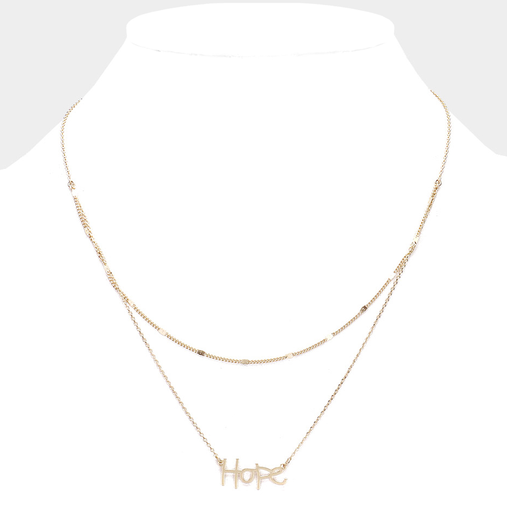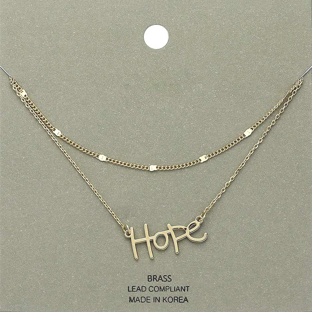 Brass Metal Hope Pendant Layered Necklace