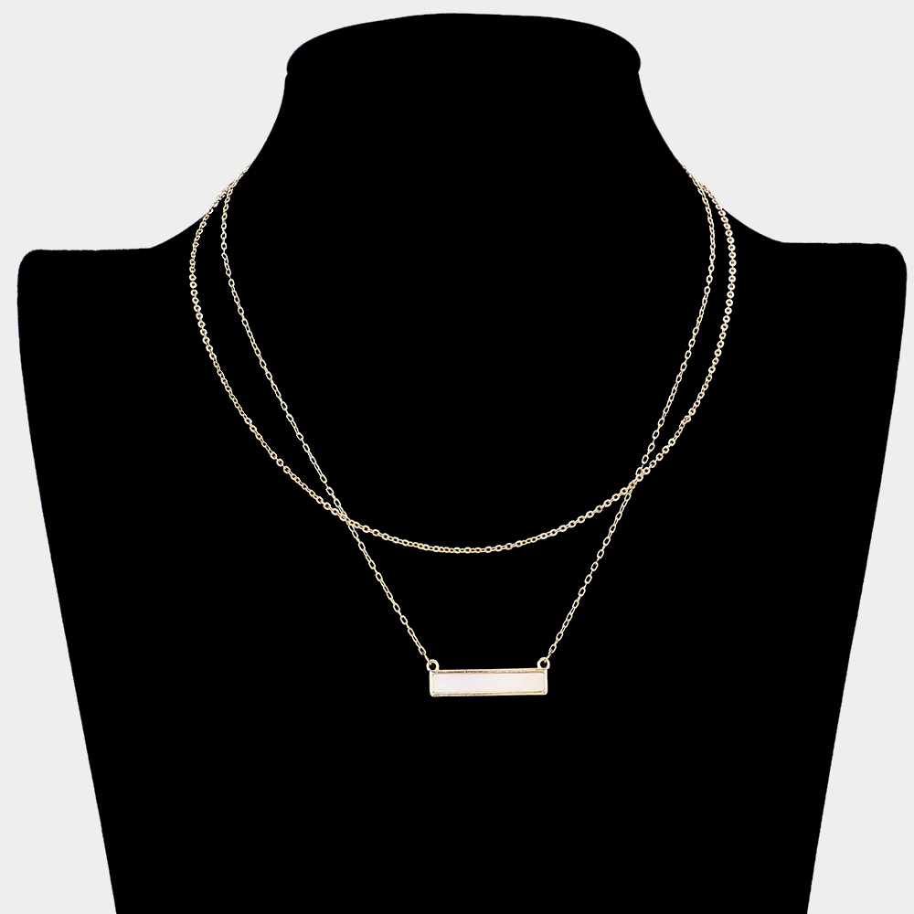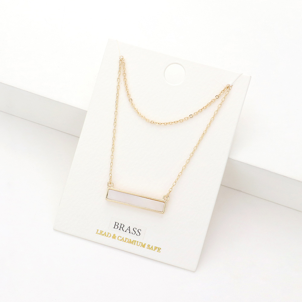 Brass Metal Mother of Pearl Rectangle Pendant Double Layered Necklace