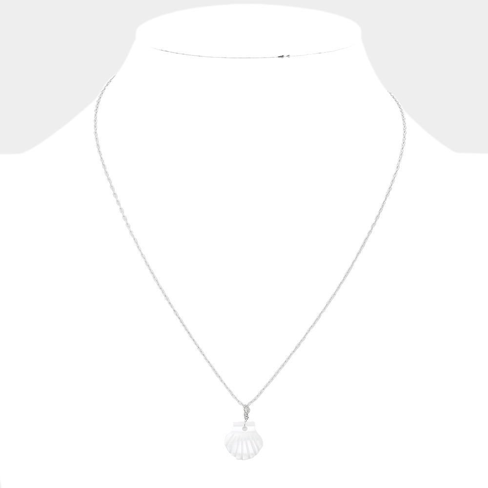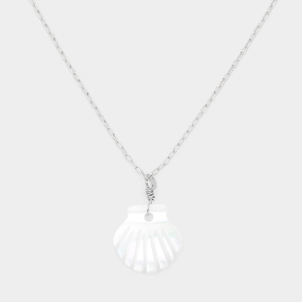 Brass Metal Mother of Pearl Shell Pendant Necklace