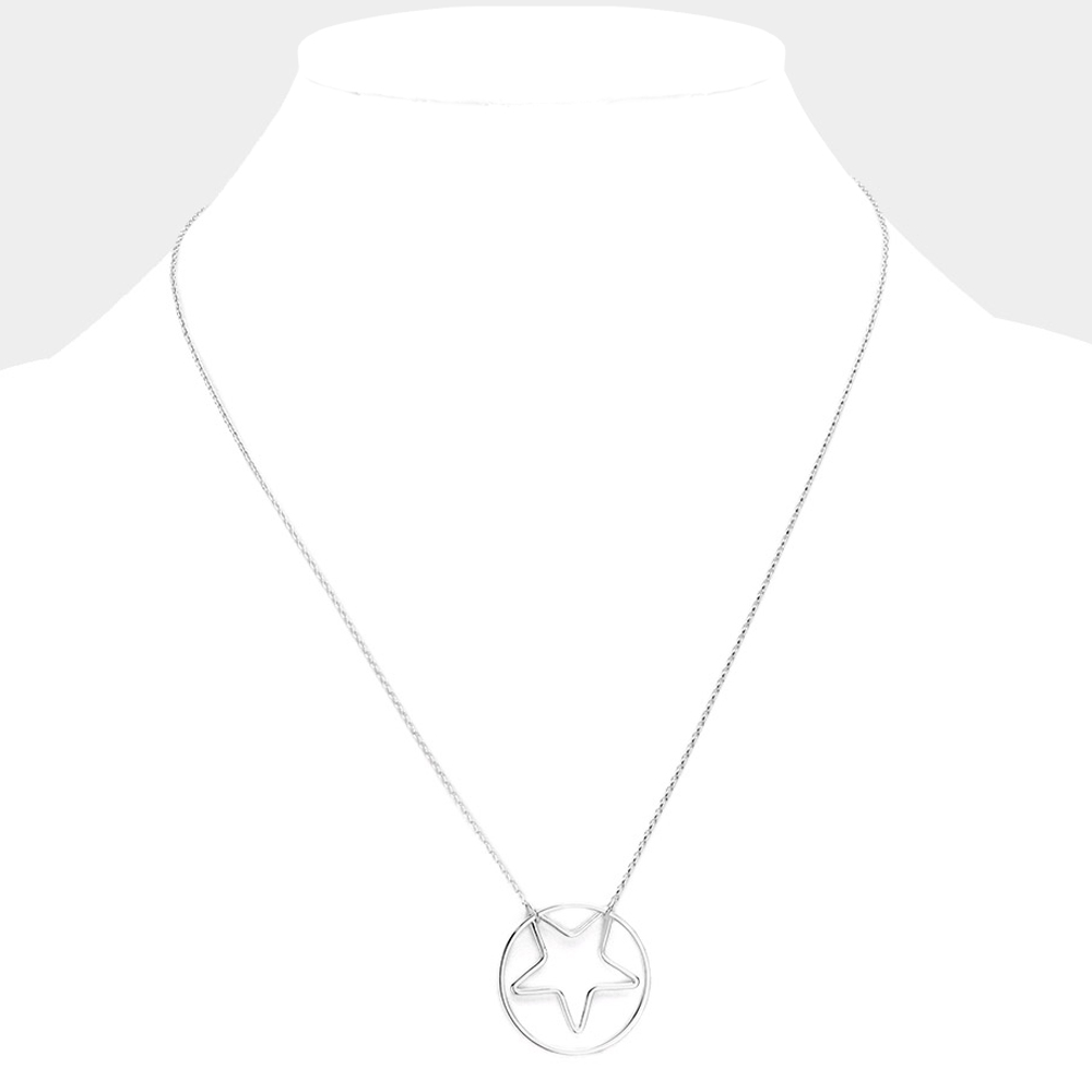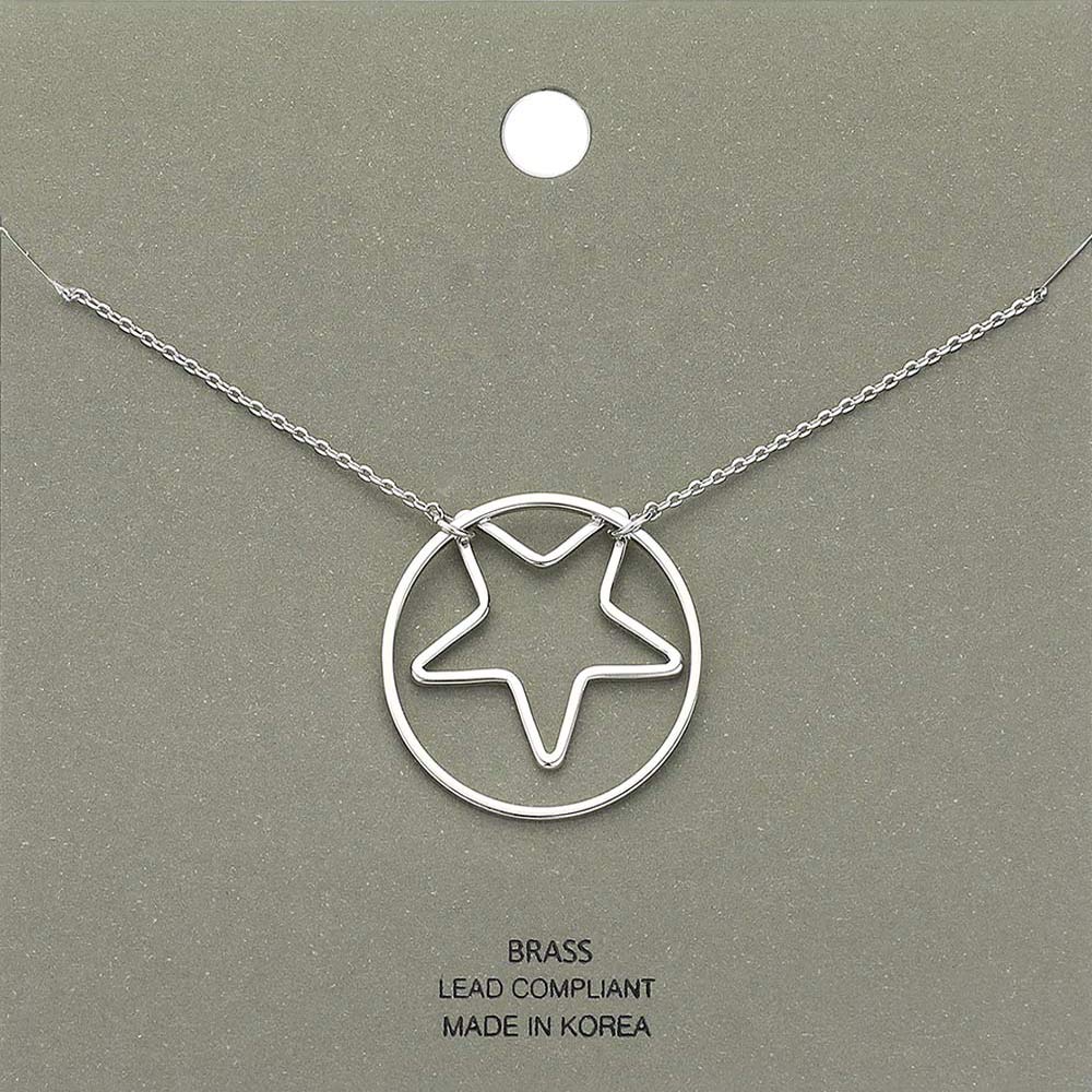 Brass Metal Open Circle Star Pendant Necklace