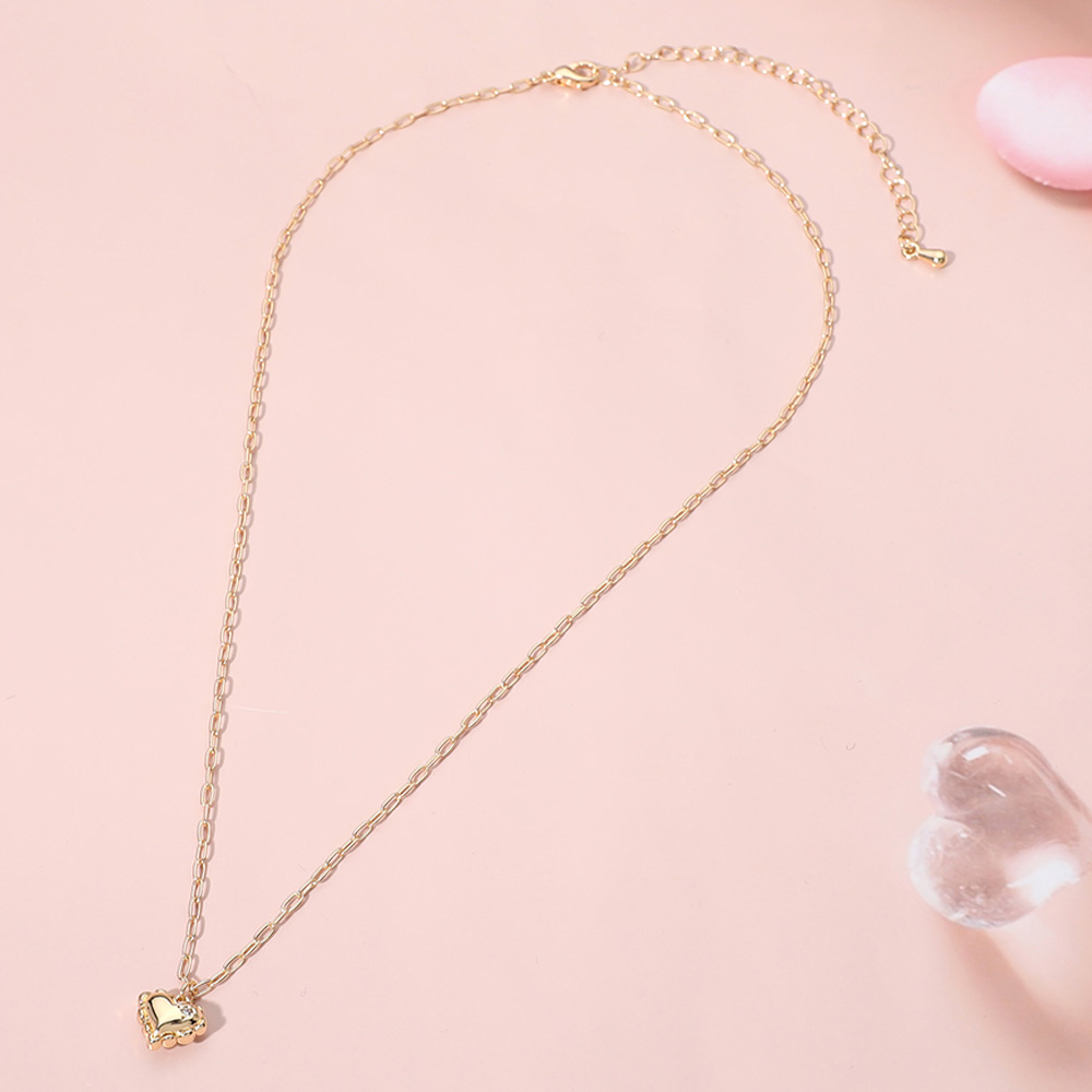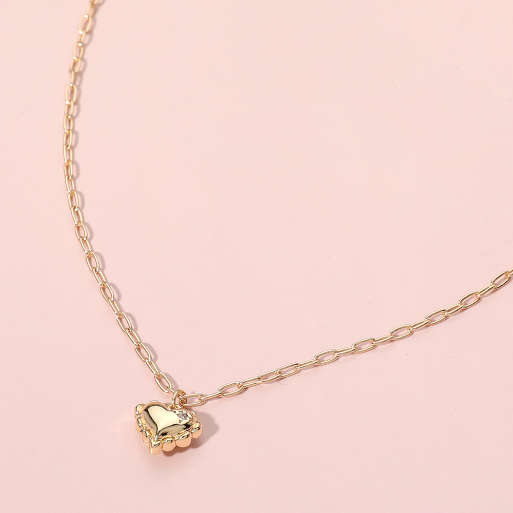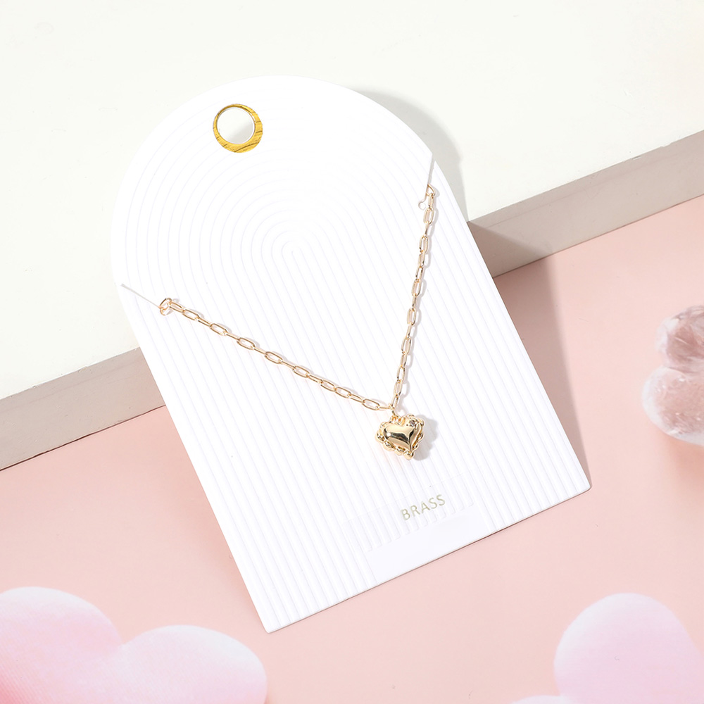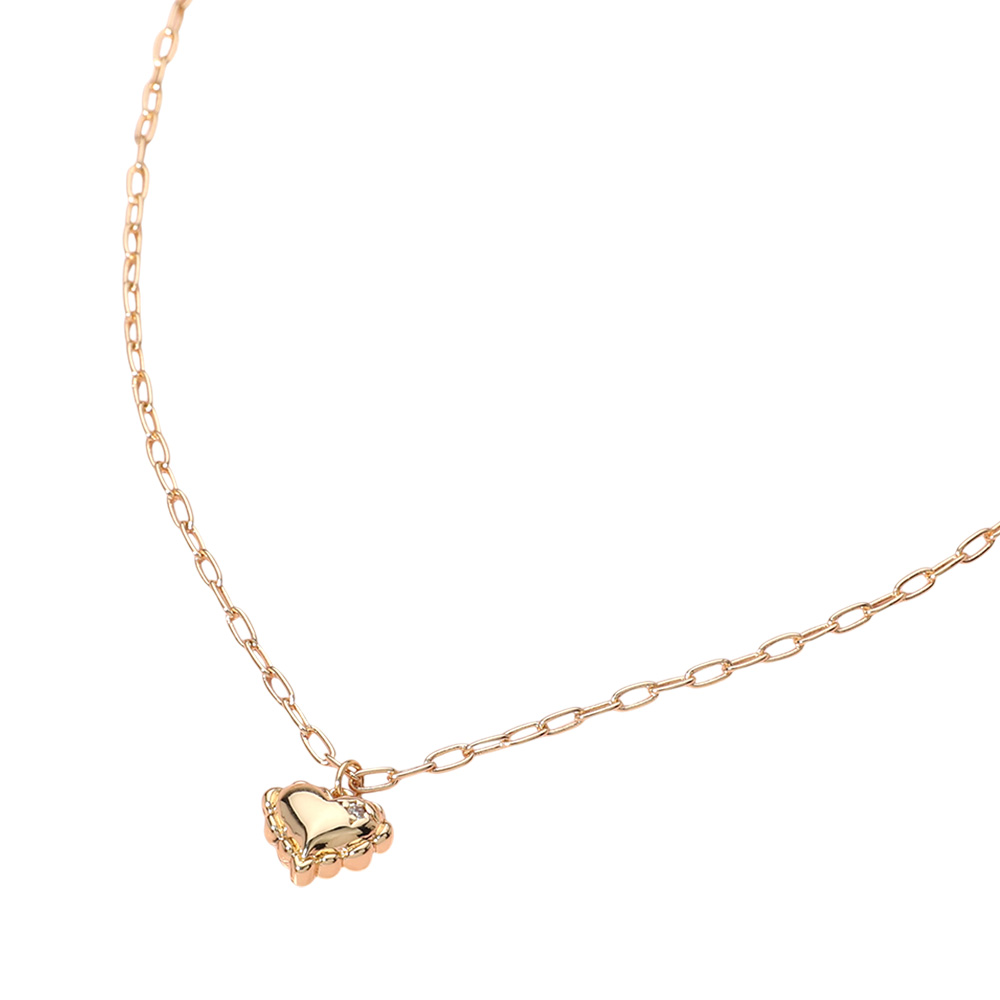 Brass Metal Puffy Heart Pendant Necklace