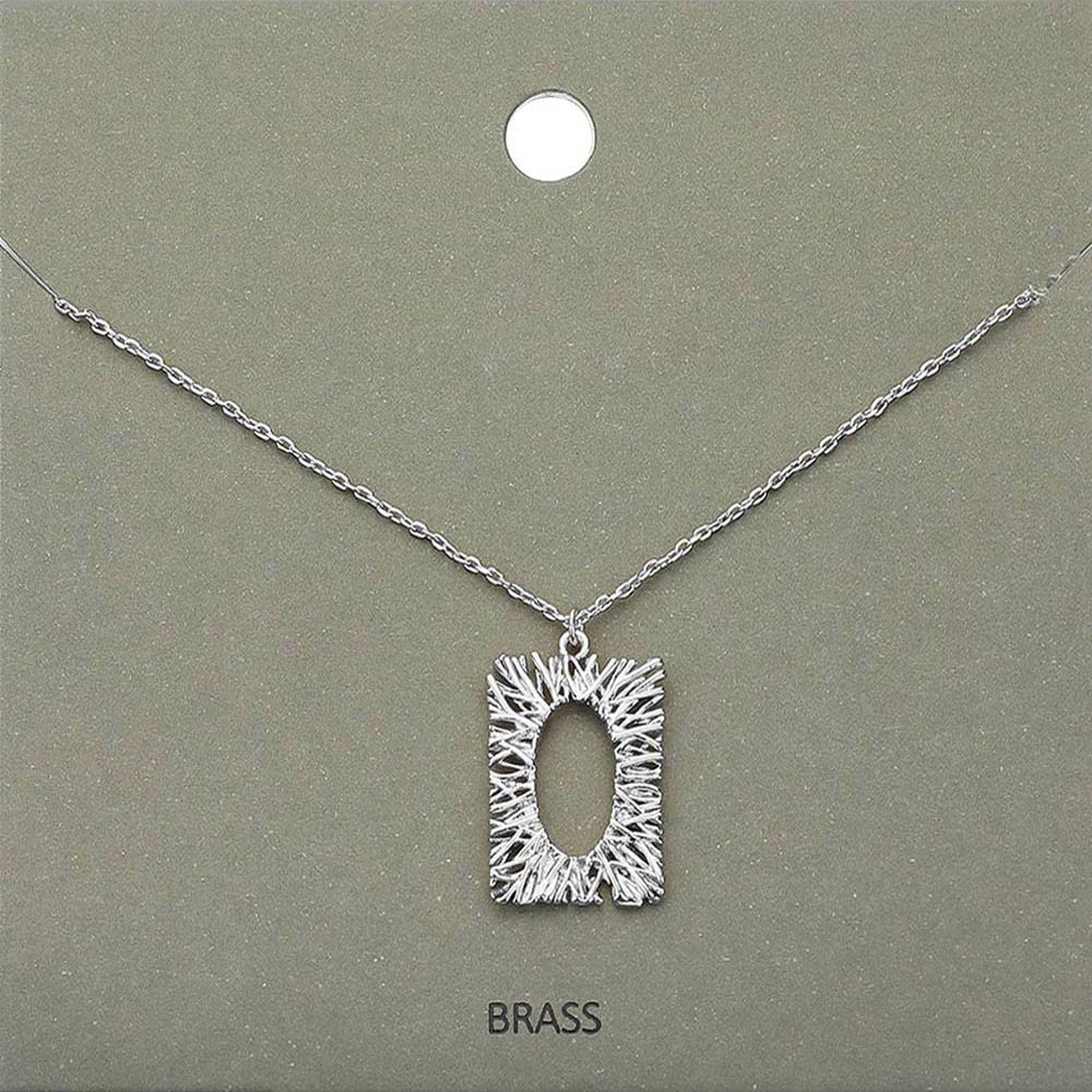 Brass Metal Rectangle Pendant Necklace
