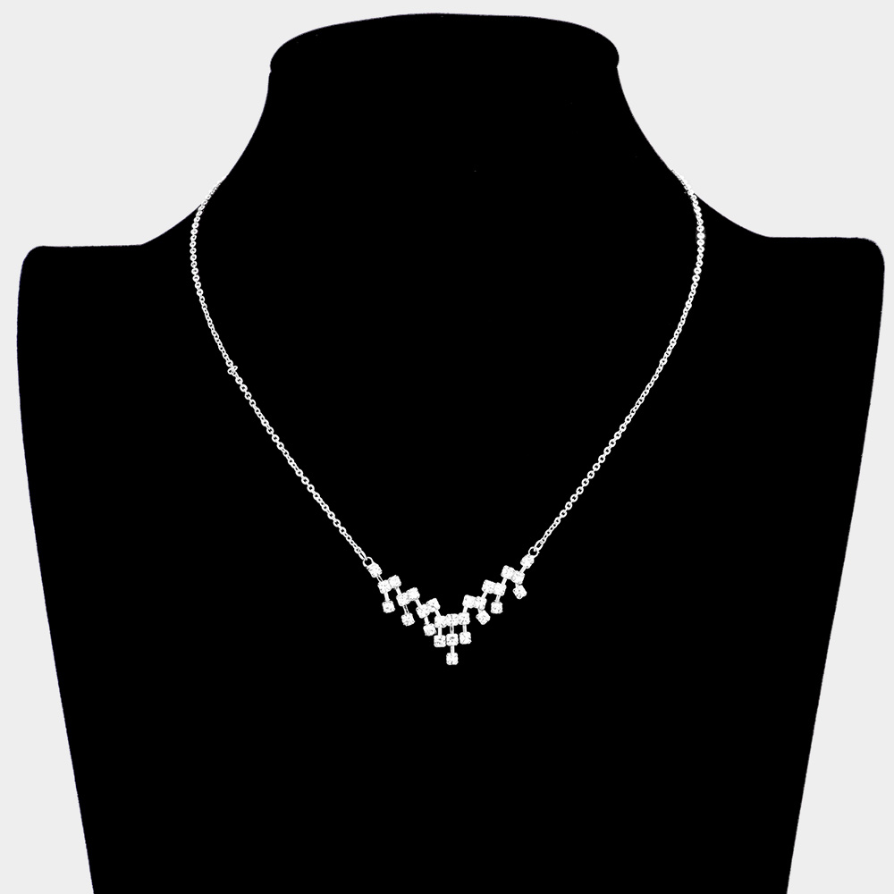 Teardrop Stone Cluster Pendant Marquise Rhinestone Embellished Evening Necklace