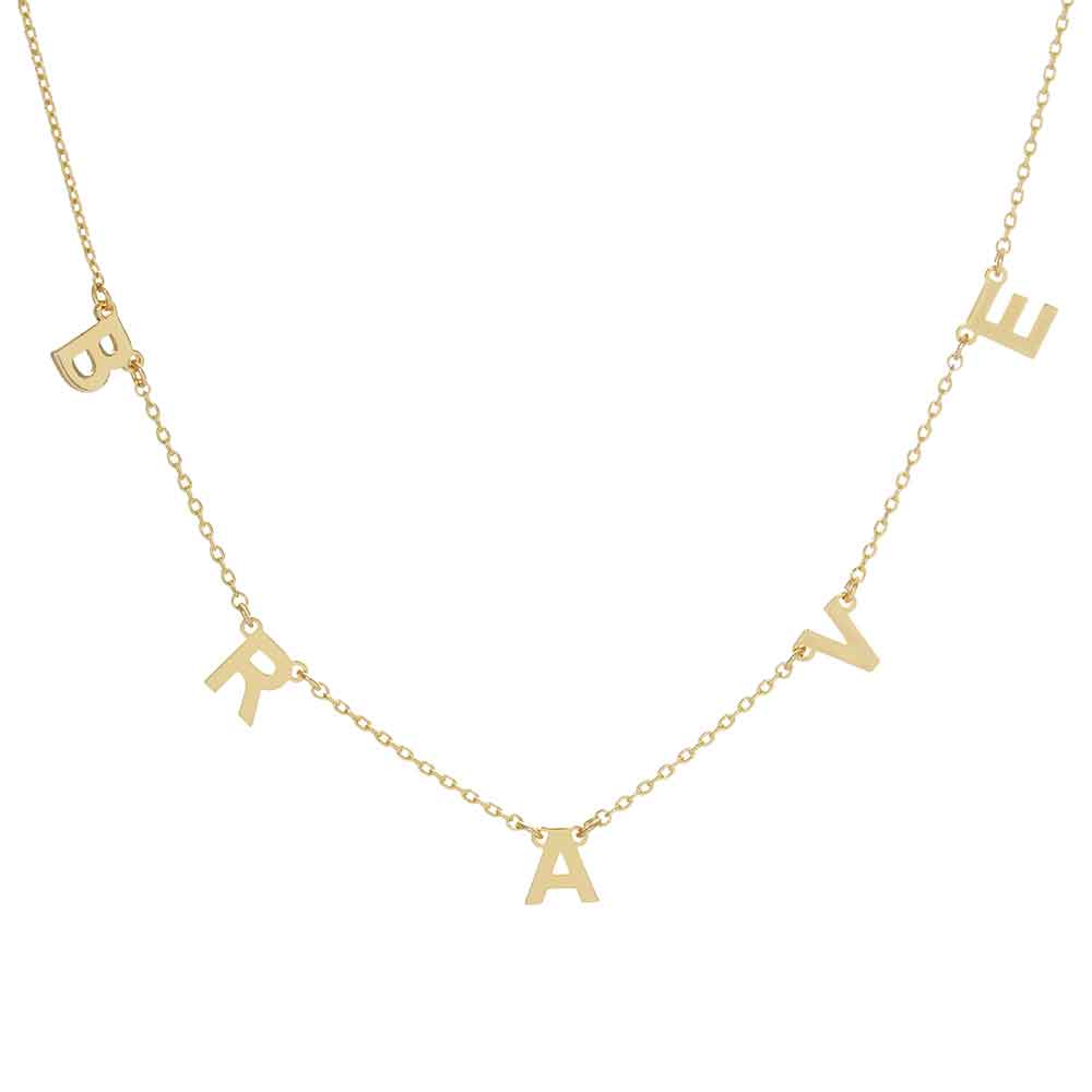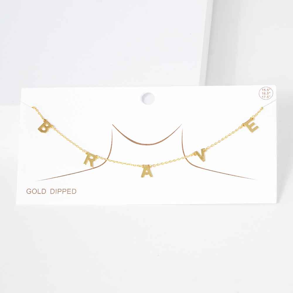 BRAVE Gold Dipped Metal Message Pendant Station Necklace
