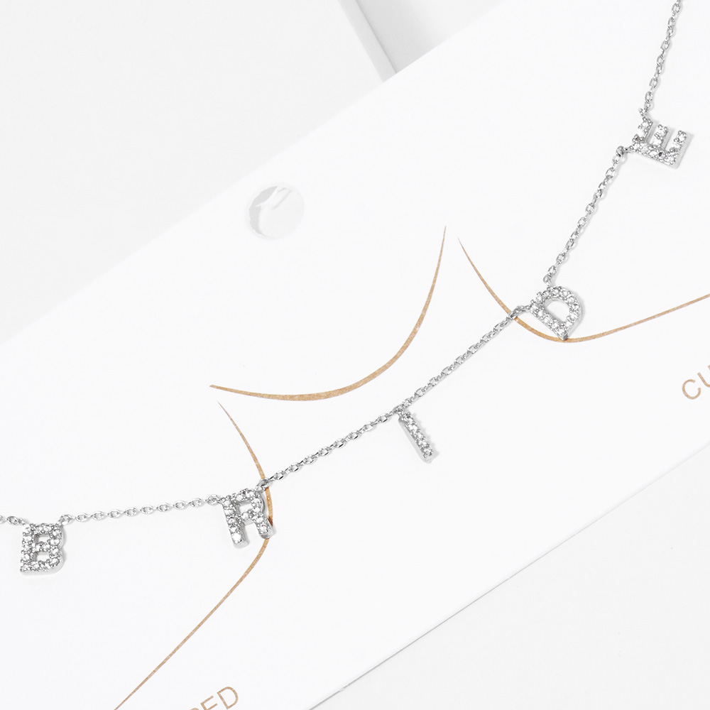BRIDE Message Pendant Gold Dipped CZ Necklace