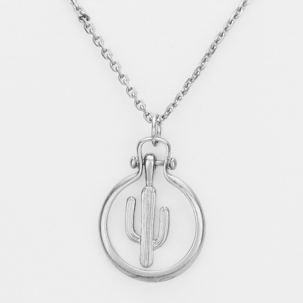 Cactus Metal Open Circle Pendant Necklace