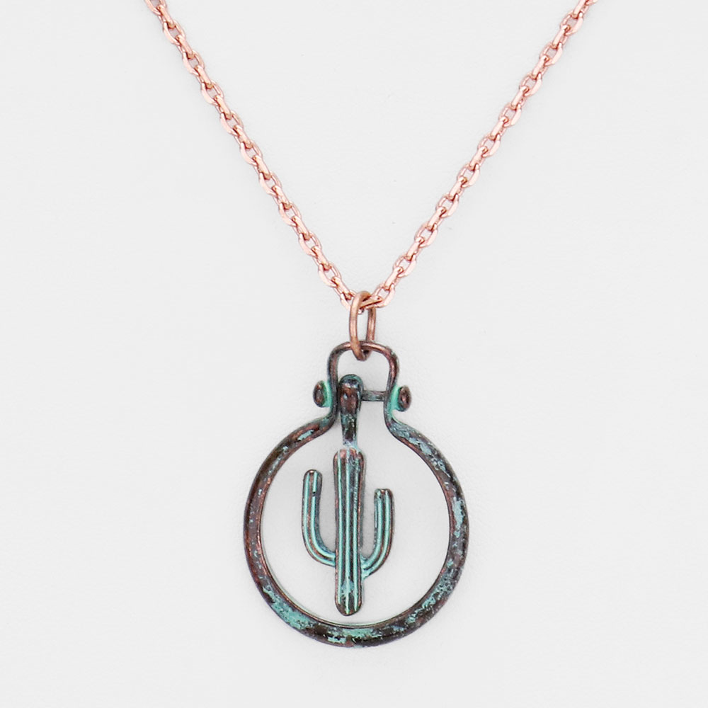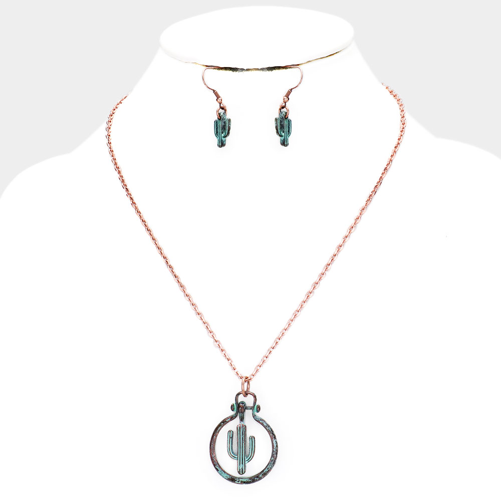 Cactus Accented Irregular Metal Oval Dangle Earrings