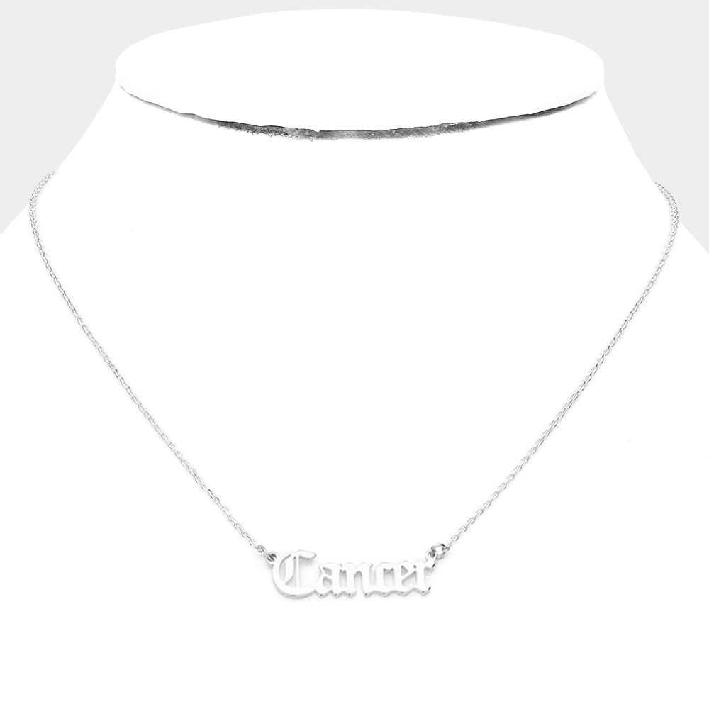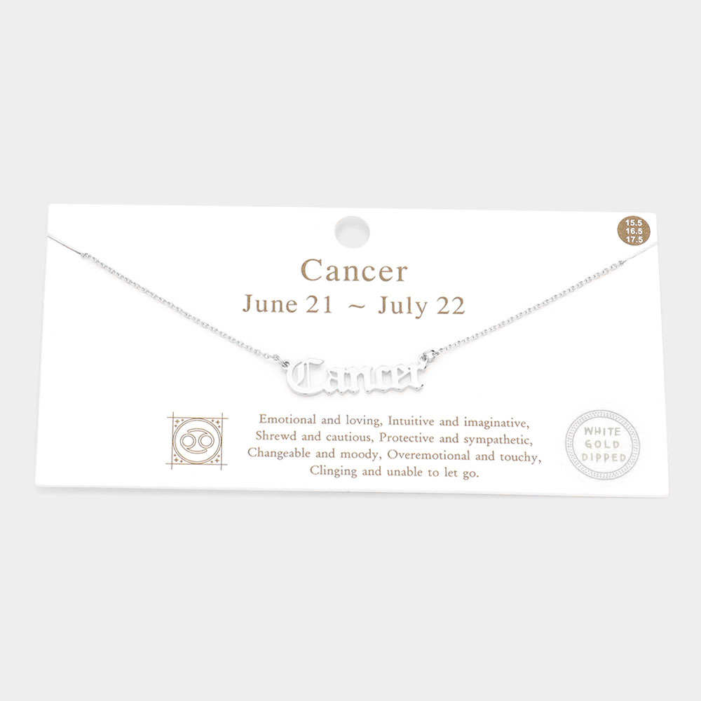 Cancer White Gold Dipped Zodiac Name Pendant Necklace