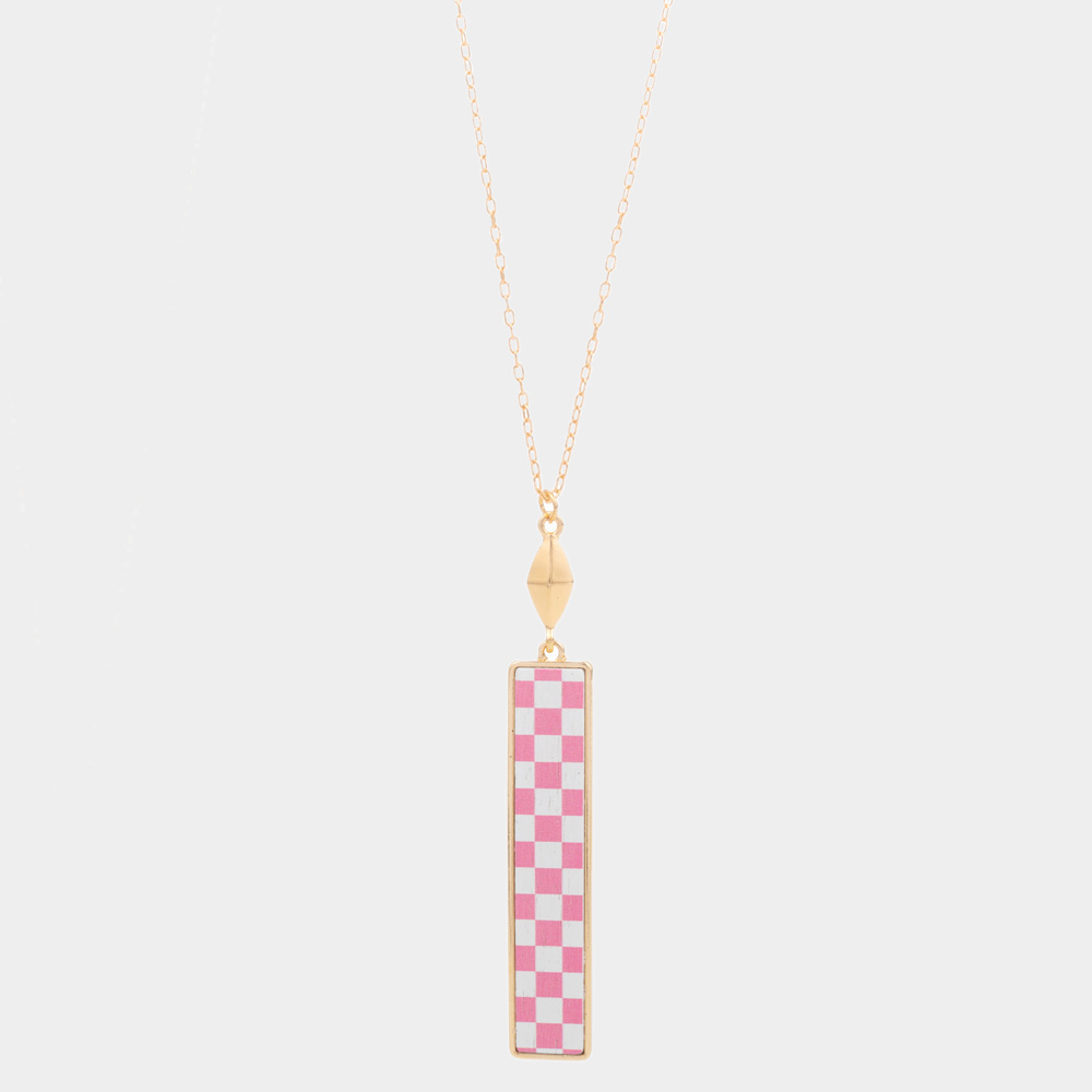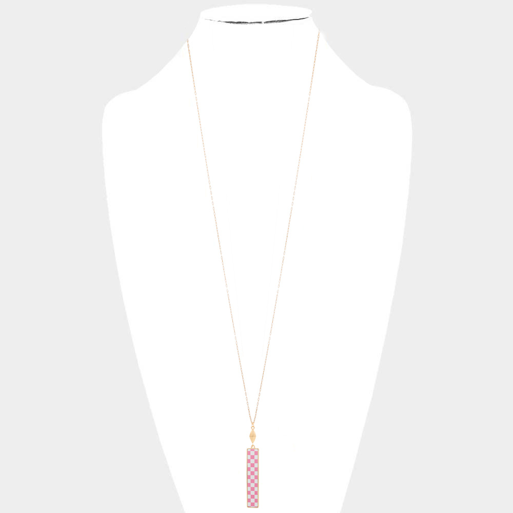 Checkerboard Rectangle Pendant Long Necklace