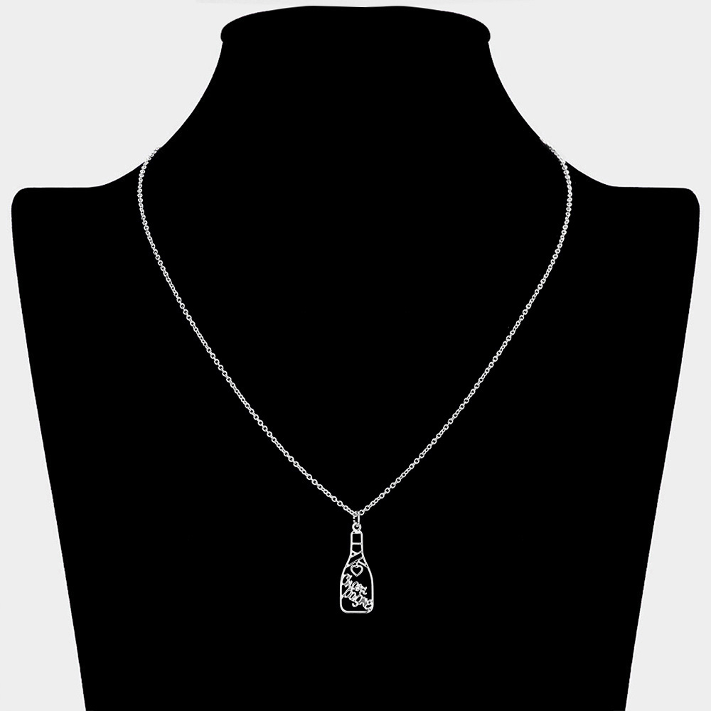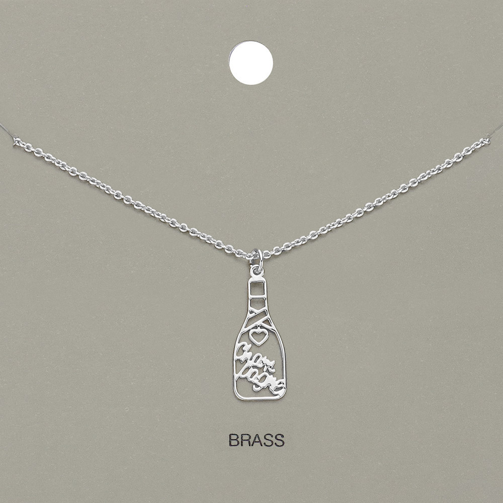 Cheers Message Champagne Bottle Brass Metal Pendant Necklace
