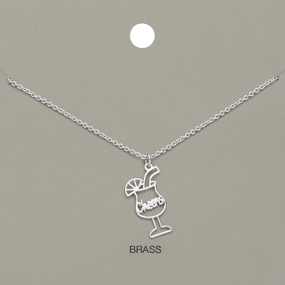 Cheers Message Champagne Tequila Glass Brass Metal Pendant Necklace