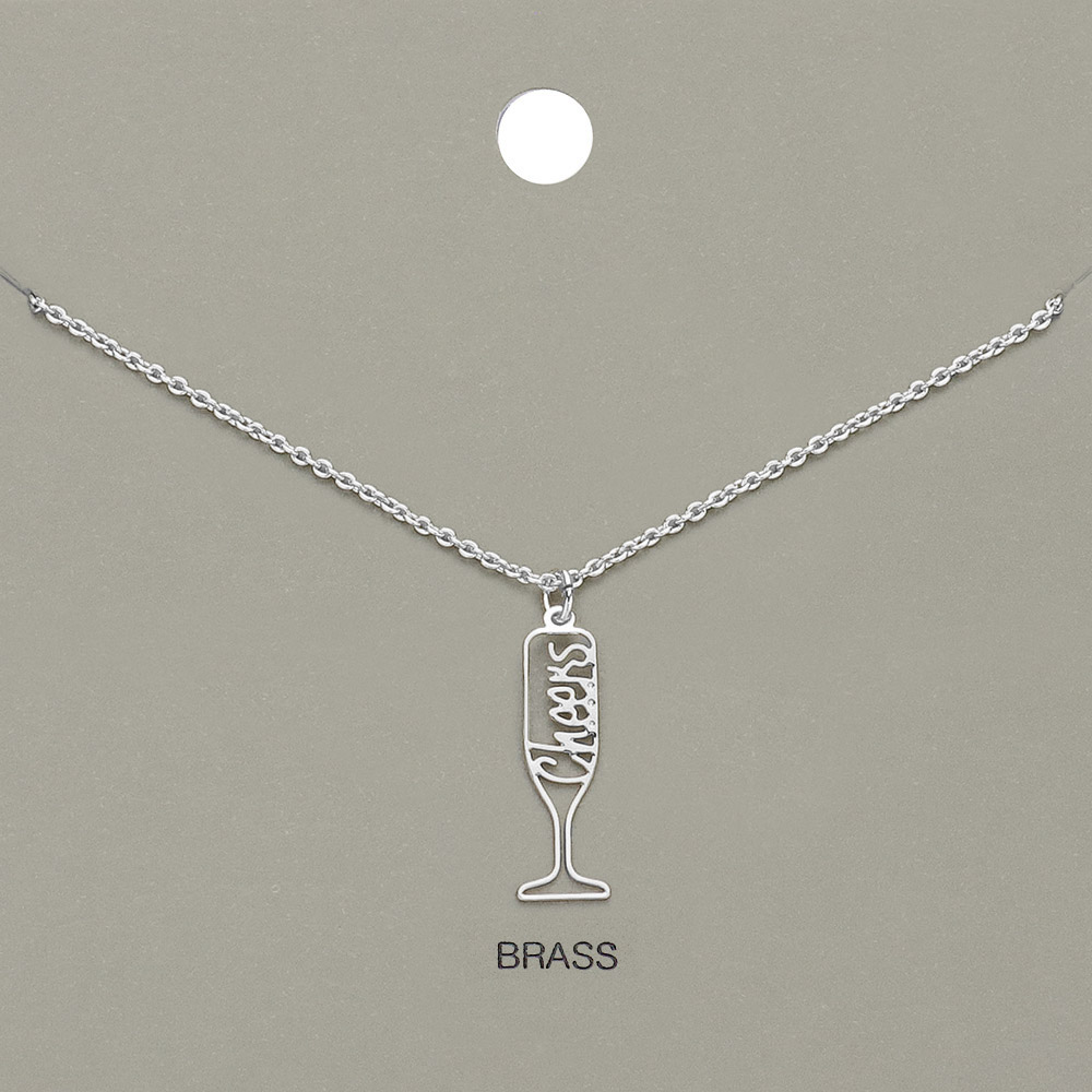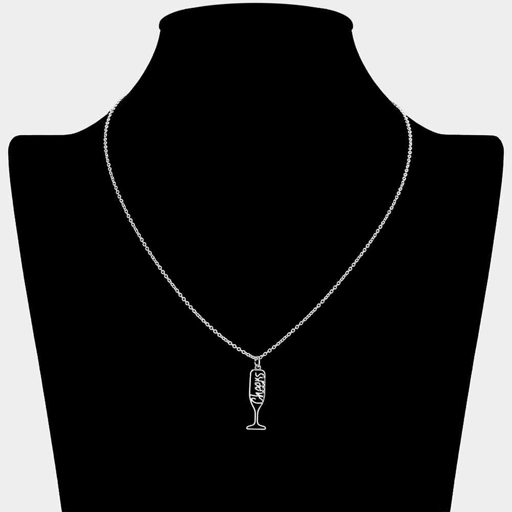 Cheers Message Wine Glass Brass Metal Pendant Necklace