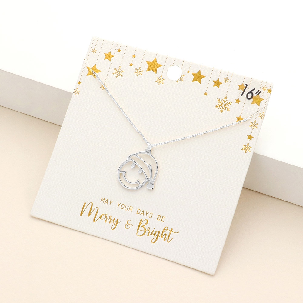 Christmas Metal Santa Hat Smile Pendant Necklace