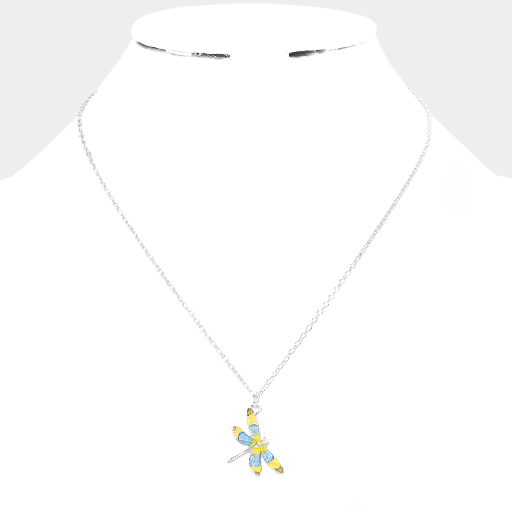 Colored Dragonfly Pendant Necklace