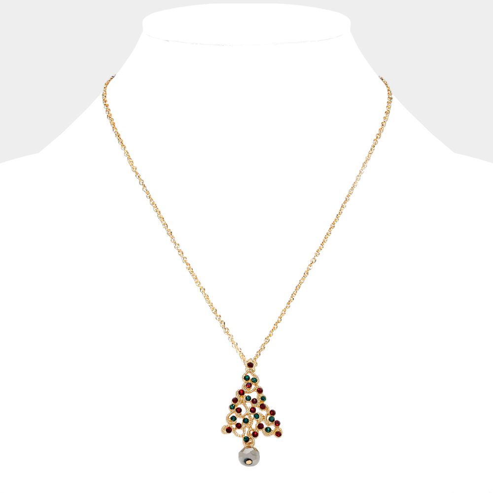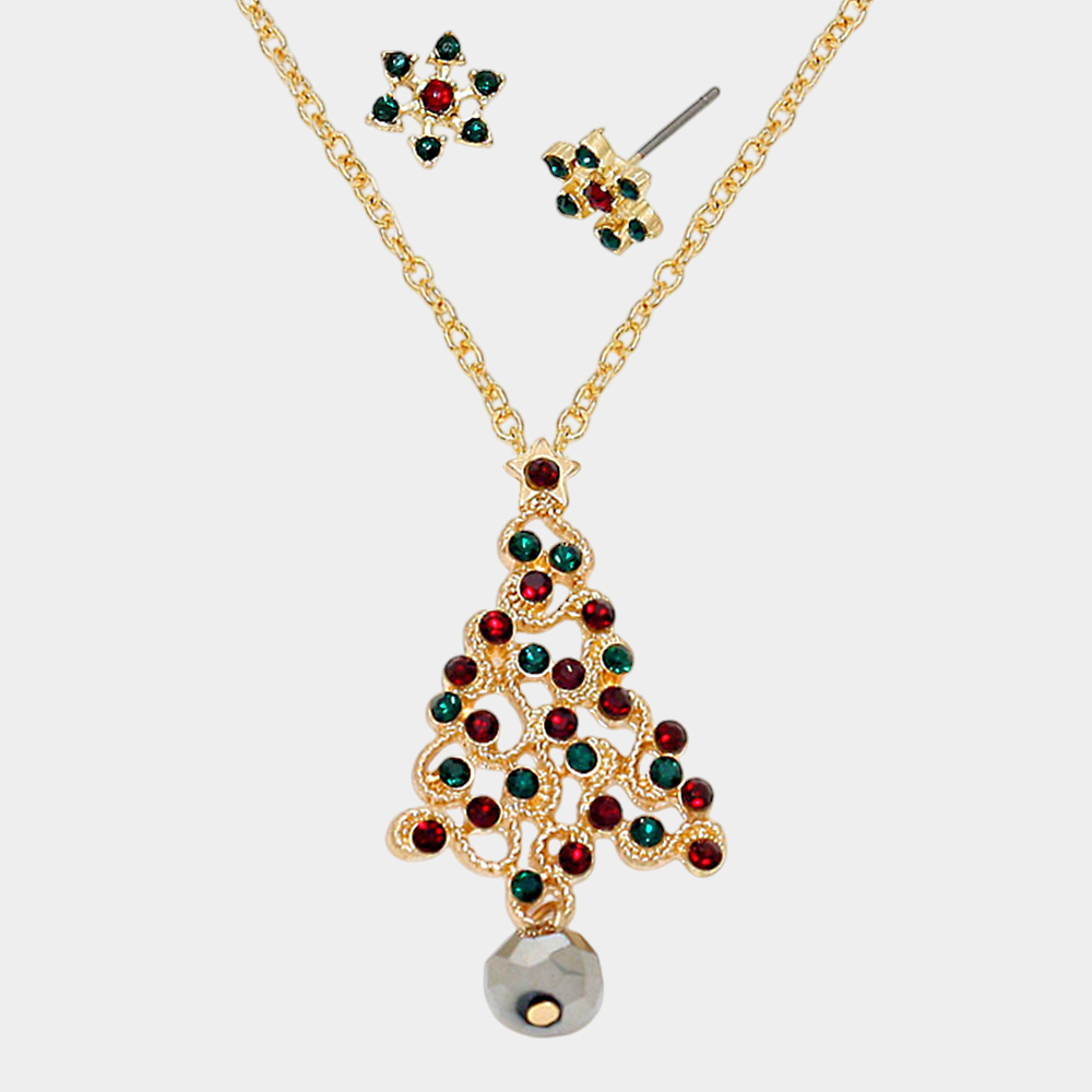 Crystal Christmas Tree Pendant Necklace with Snow Flake Earrings