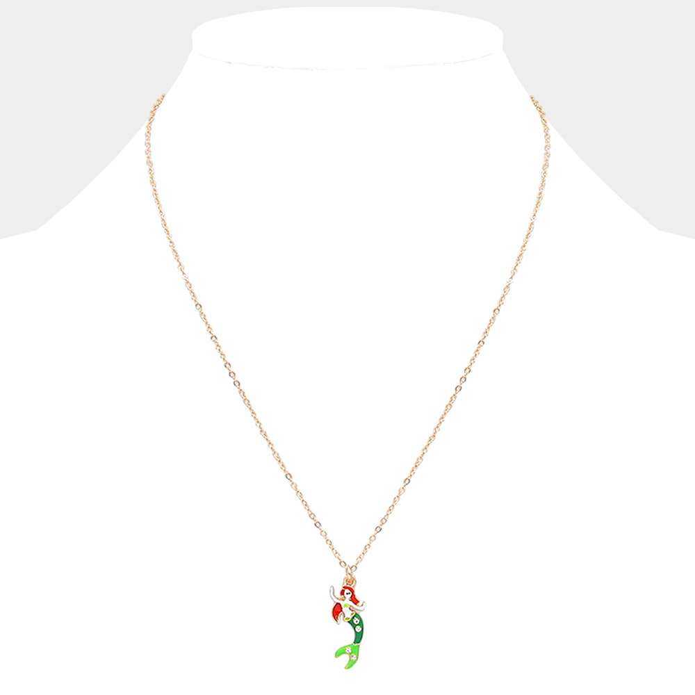 Metal Mermaid Round Pendant Whale Tail Charm Necklace
