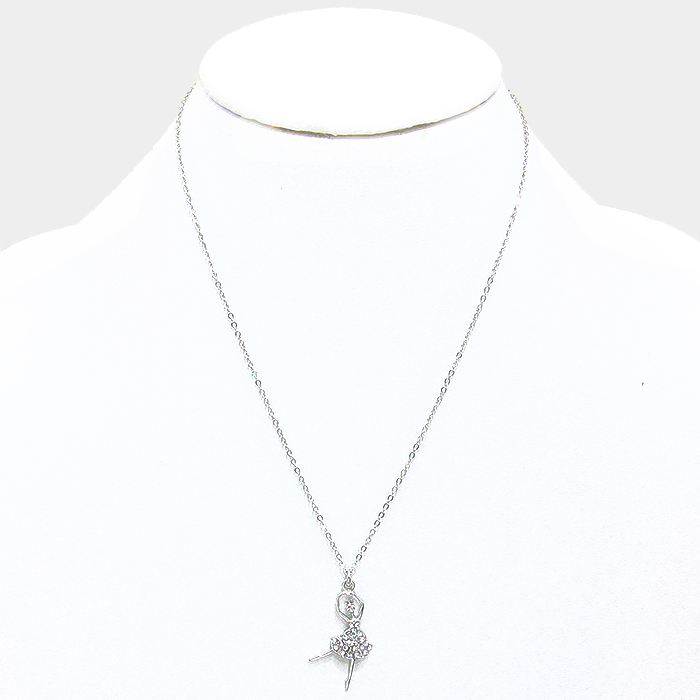 Crystal Pave Ballerina Girl Pendant Necklace
