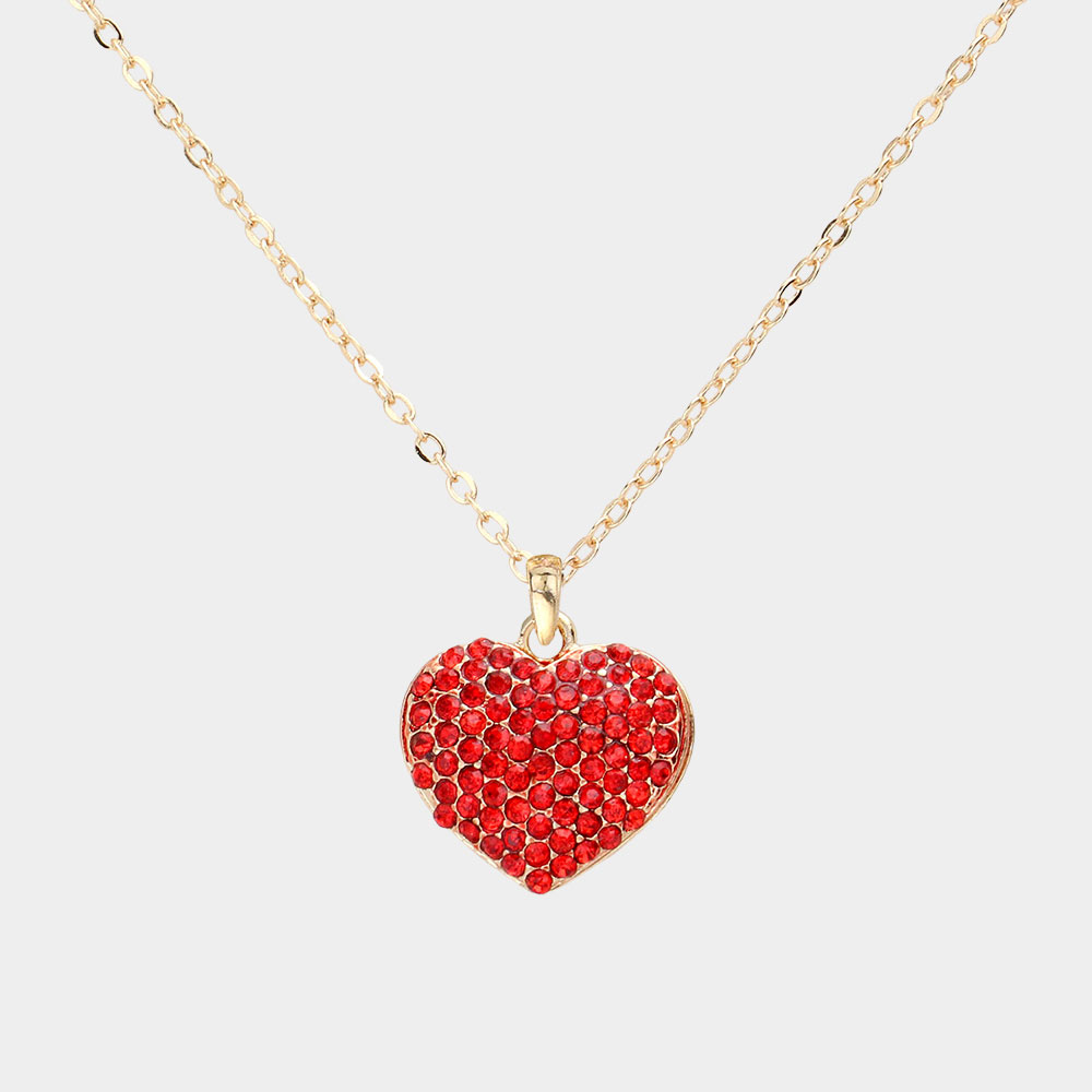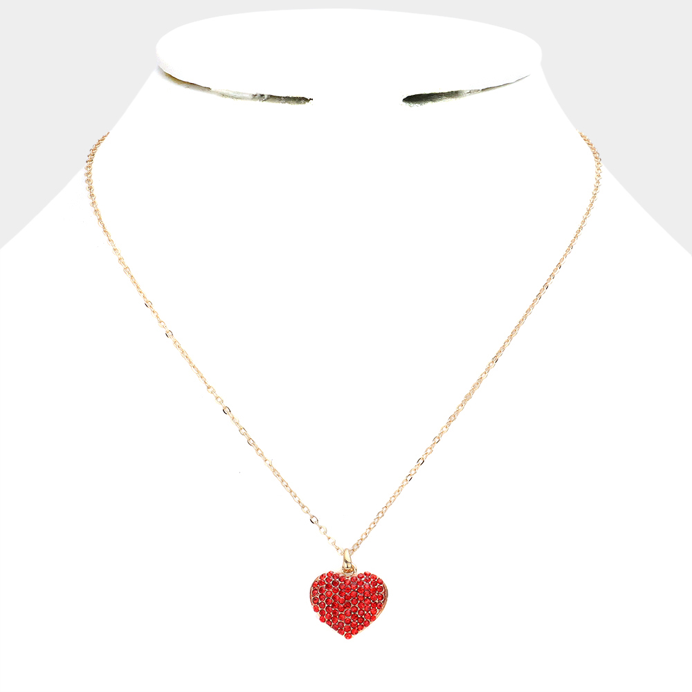 White Gold Dipped Double Heart Pendant Bubble Chain Necklace