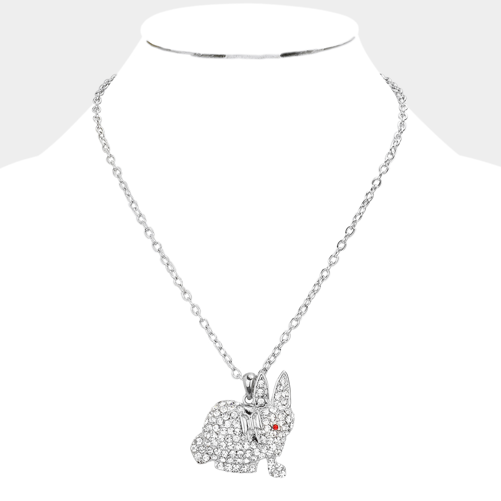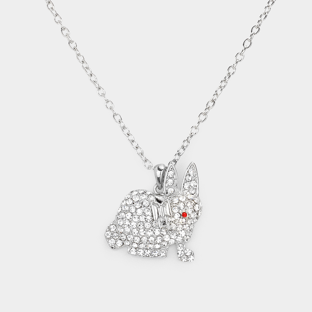 Crystal Pave Red Eye Rabbit Pendant Necklace