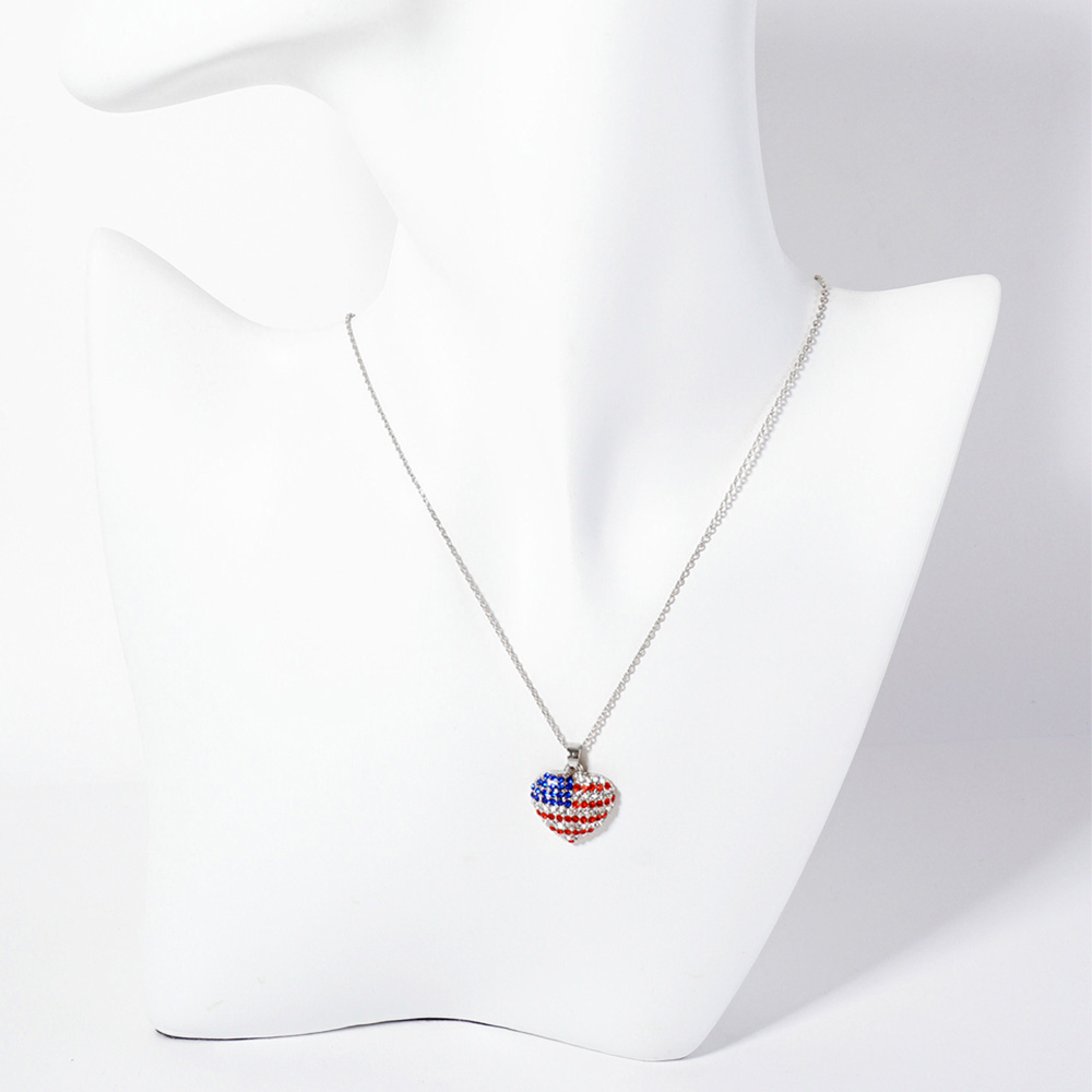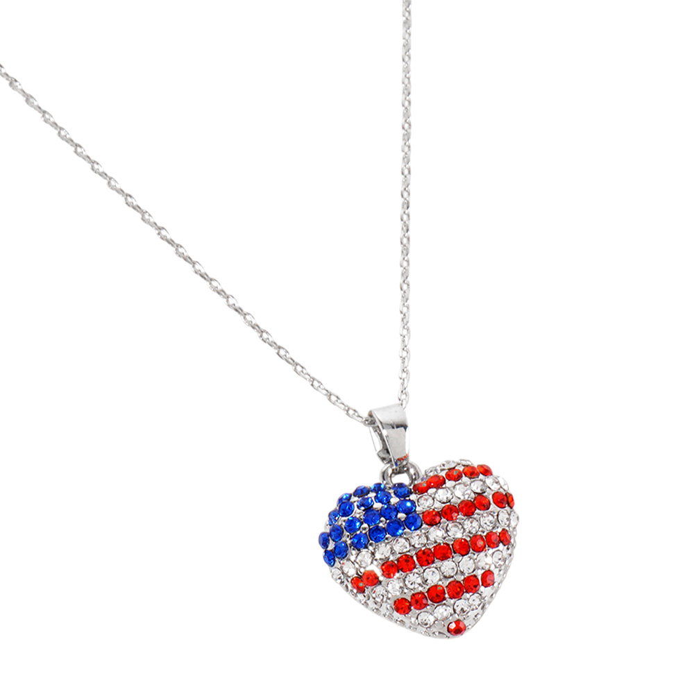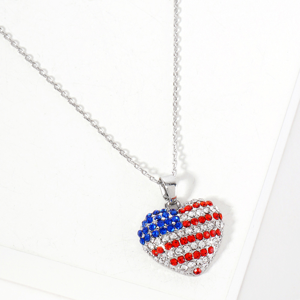 Crystal Paved American USA Flag Heart Pendant Necklace