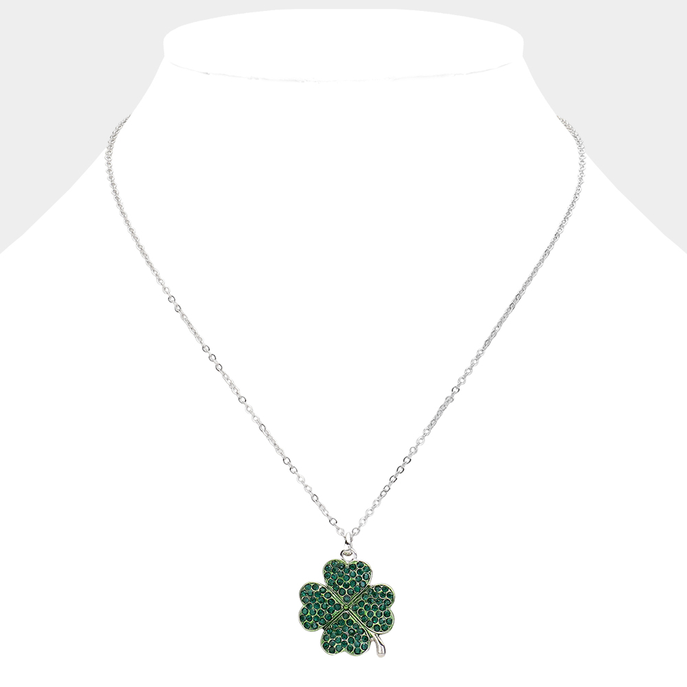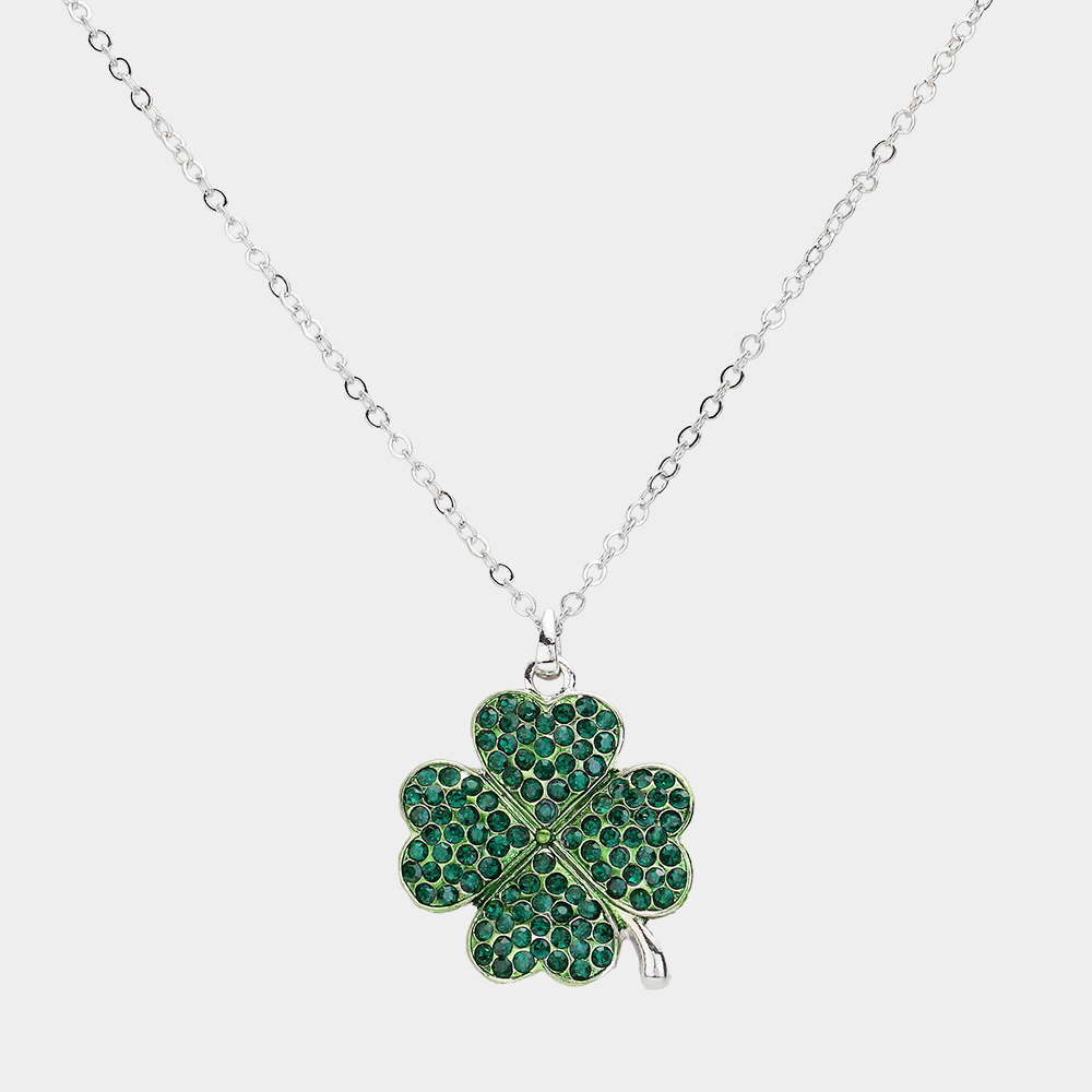White Gold Dipped Brass Metal CZ Embellished Hamsa Hand Horseshoe Elephant Clover Pendant Necklace