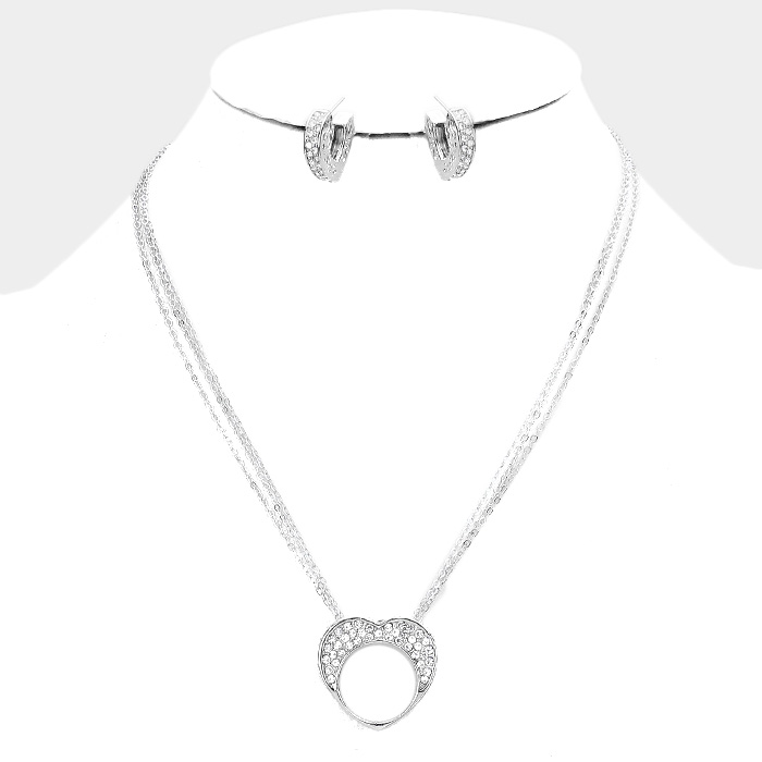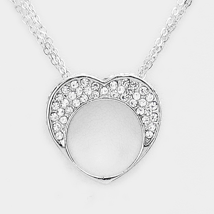 Crystal Rhinestone Pave Heart Cutout Round Pendant Necklace