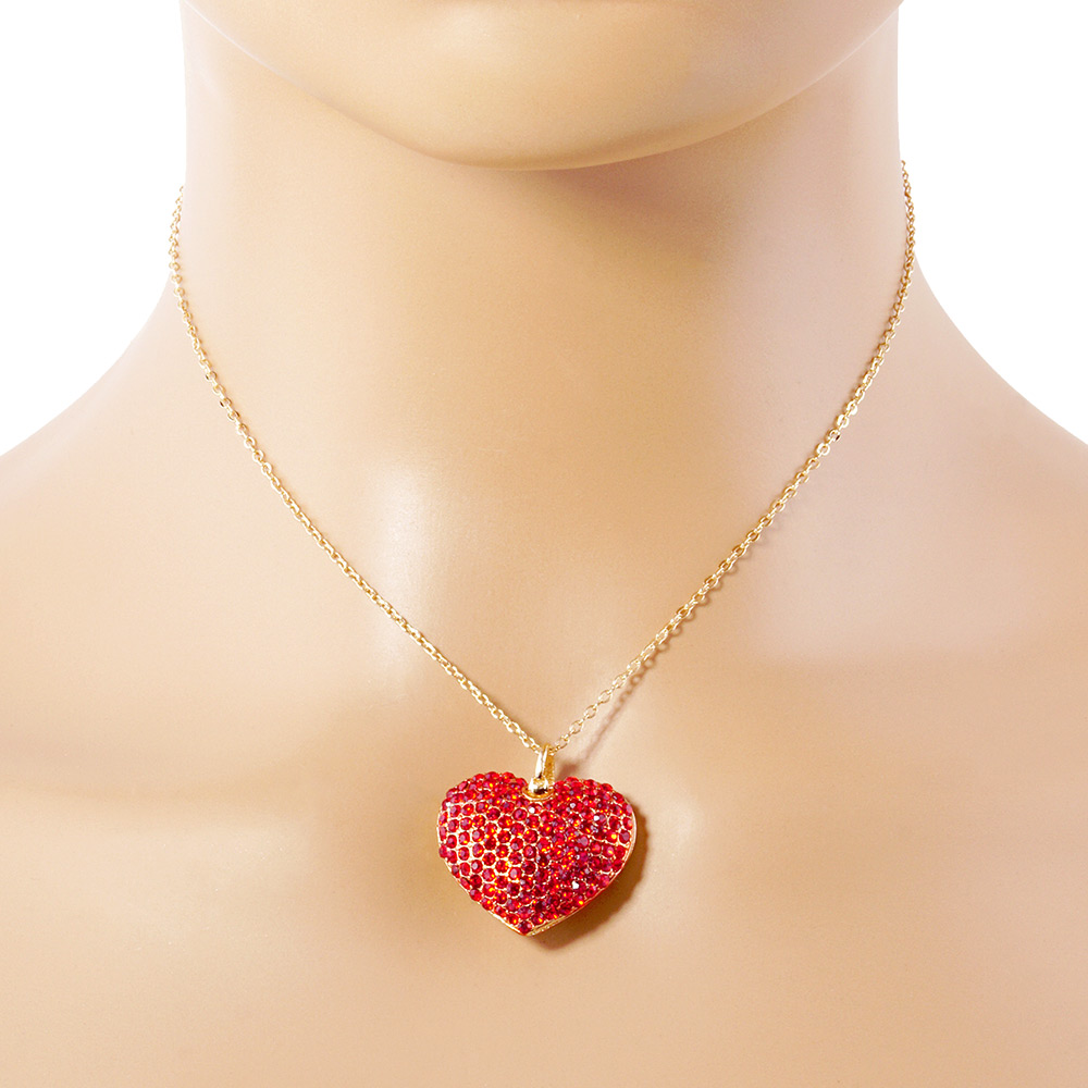 Crystal Rhinestone Pave Heart Pendant Necklace