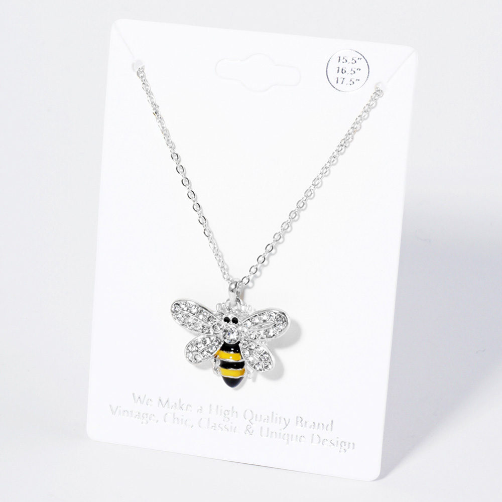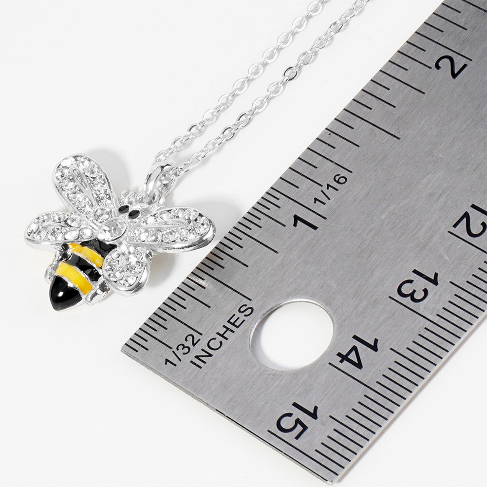 Crystal Rhinestone Paved Enamel Honey Bee Pendant Necklace