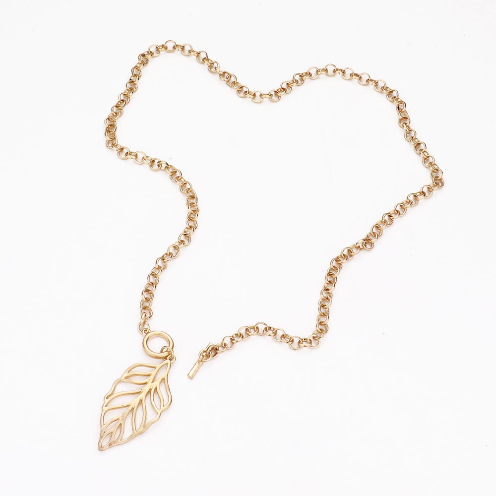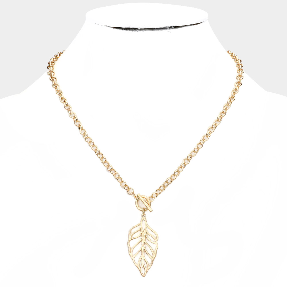 Cut Out Metal Leaf Pendant Toggle Necklace