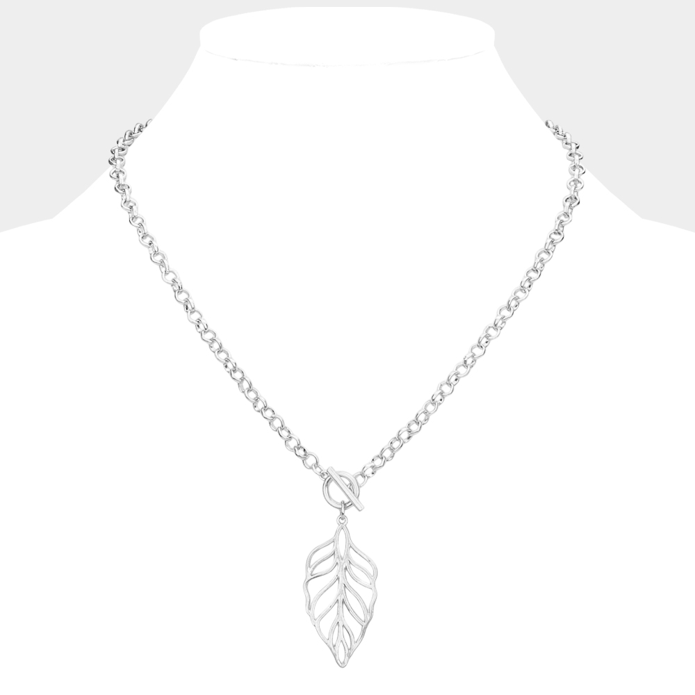 Cut Out Metal Leaf Pendant Toggle Necklace