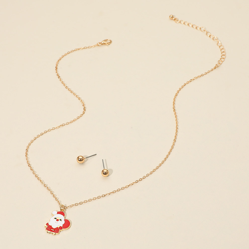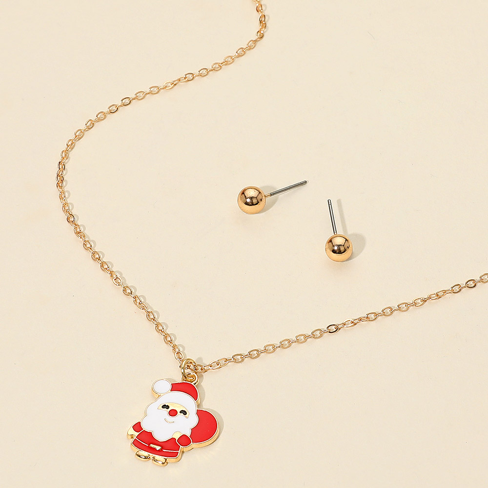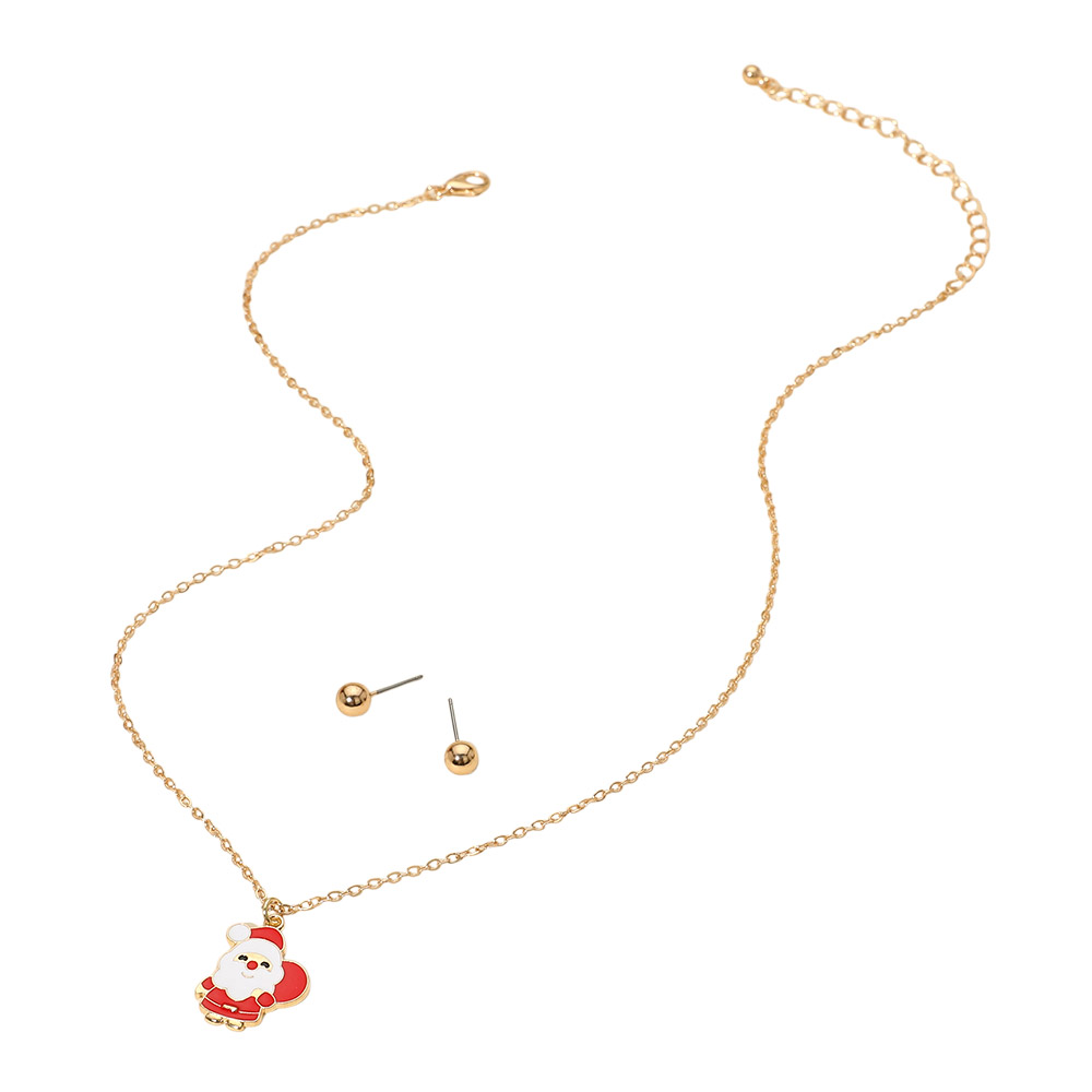 Details • Necklace Size : 18" + 3" L • Pendant Size : 0.7" X 0.8" • Earrings Size : 0.25" L • Festive necklace featuring a Santa charm and matching stud earrings. A playful holiday accessory perfect for seasonal outfits, parties, or gifting. Lightweight and cheerful for any celebration. • Lead and Nickel Compliant