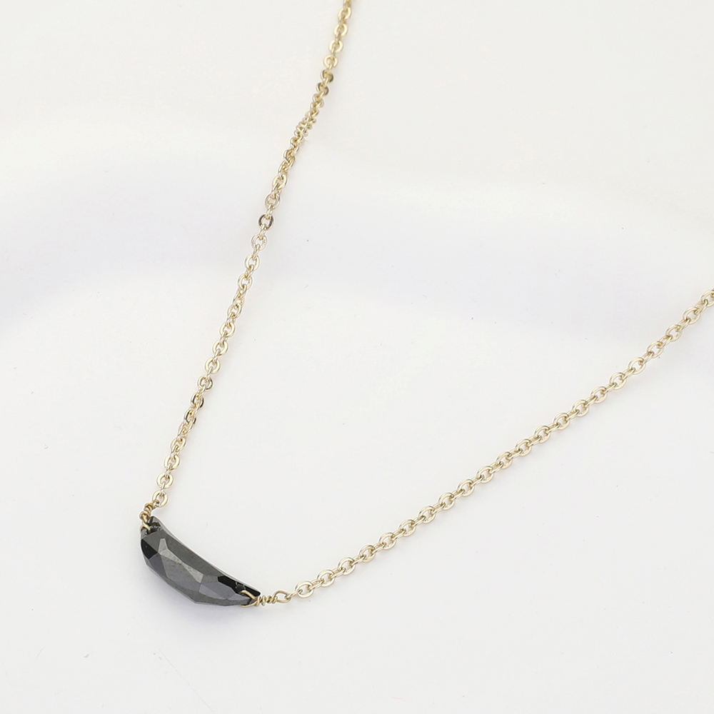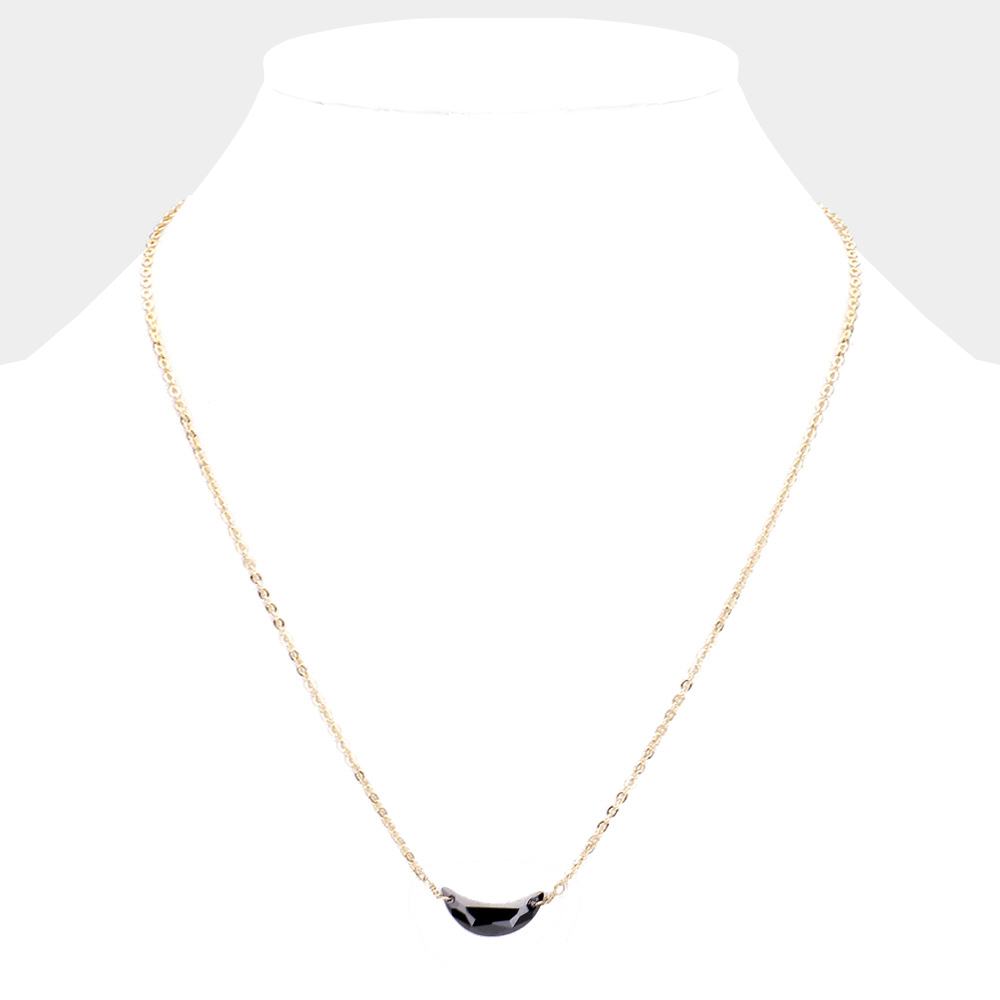Semi Precious Stone Embellished Metal Crescent Moon Pendant Long Necklace