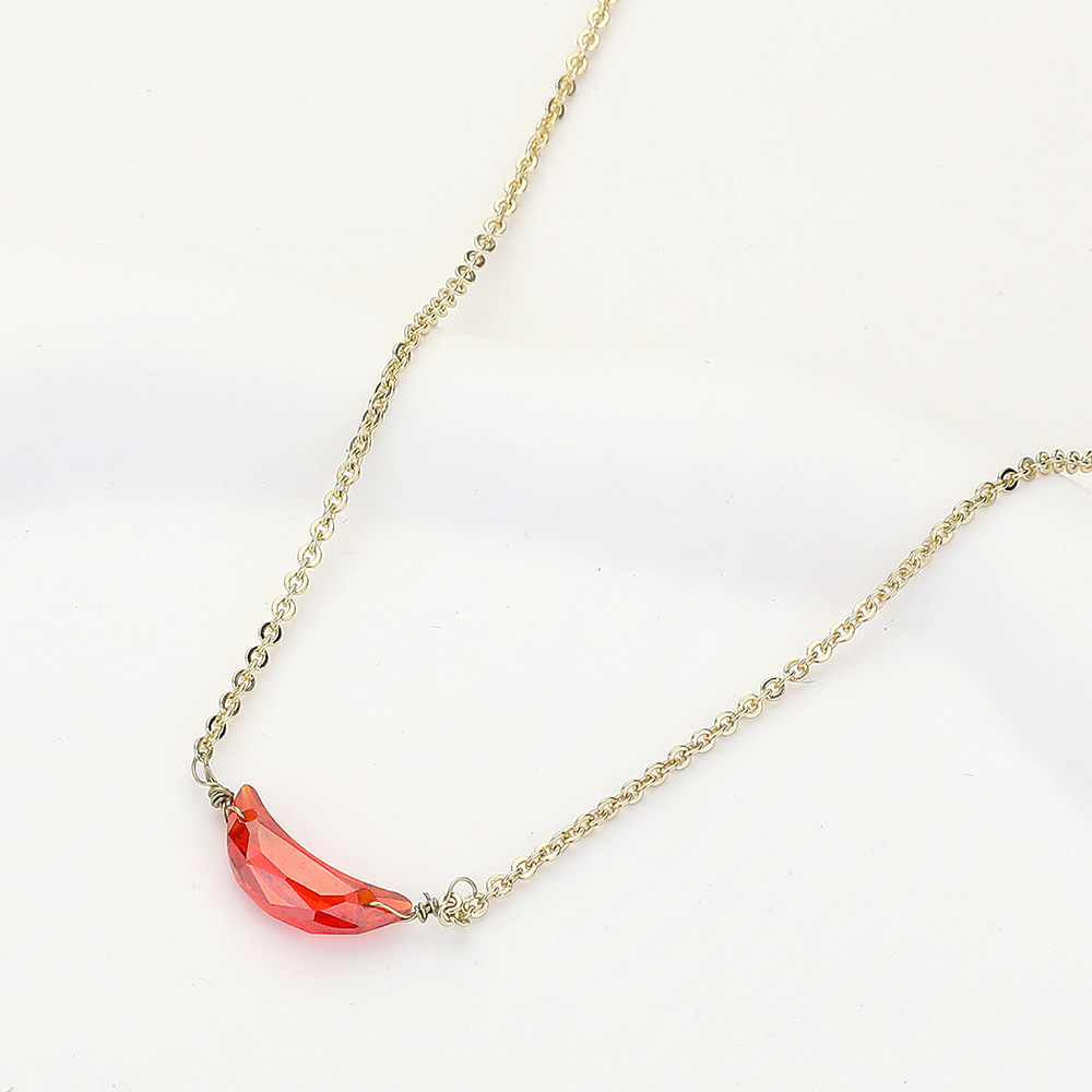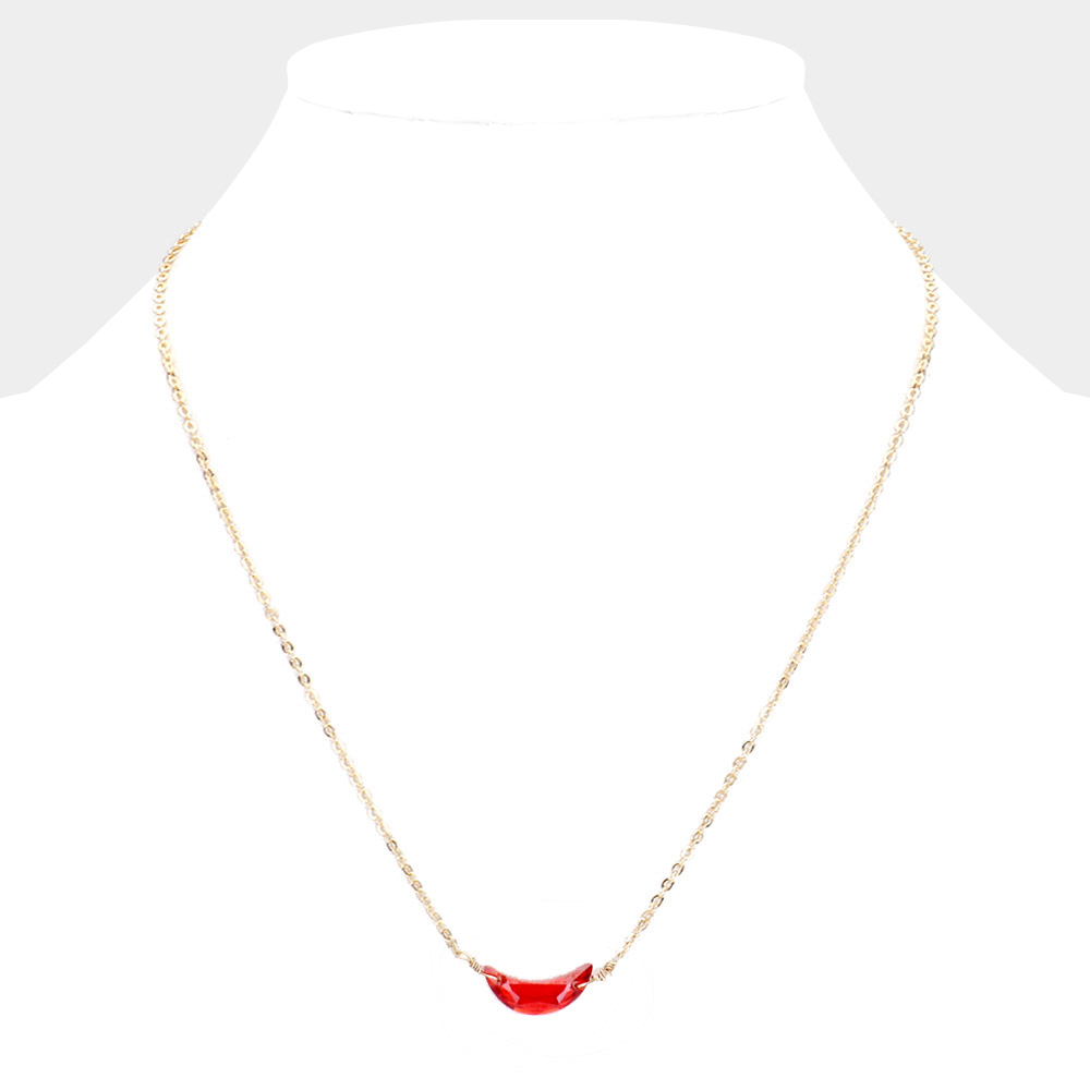 CZ Crescent Moon Stone Pendant Necklace
